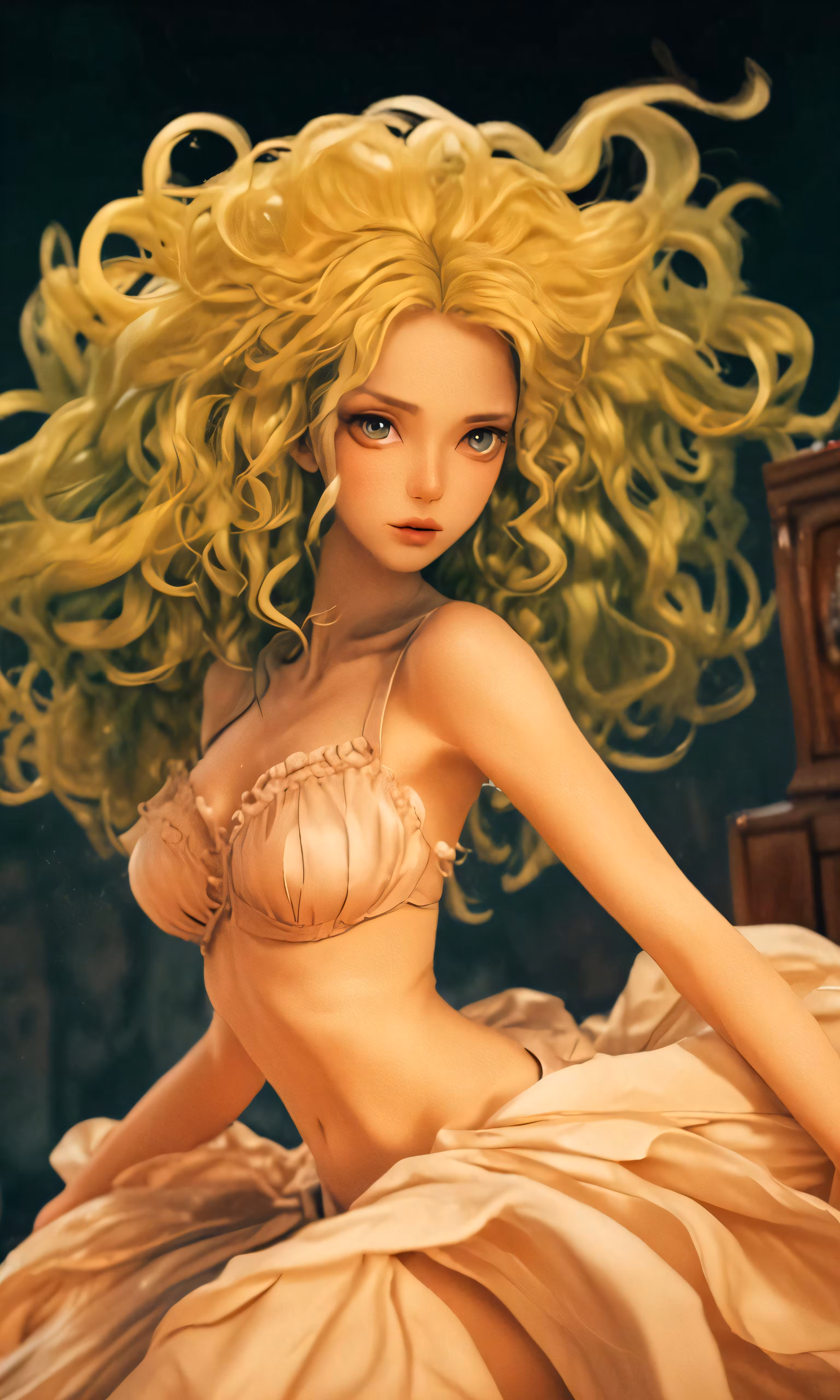 High resolution picture, free to use, beautiful blonde animated illustration of a lady sitting on a bed