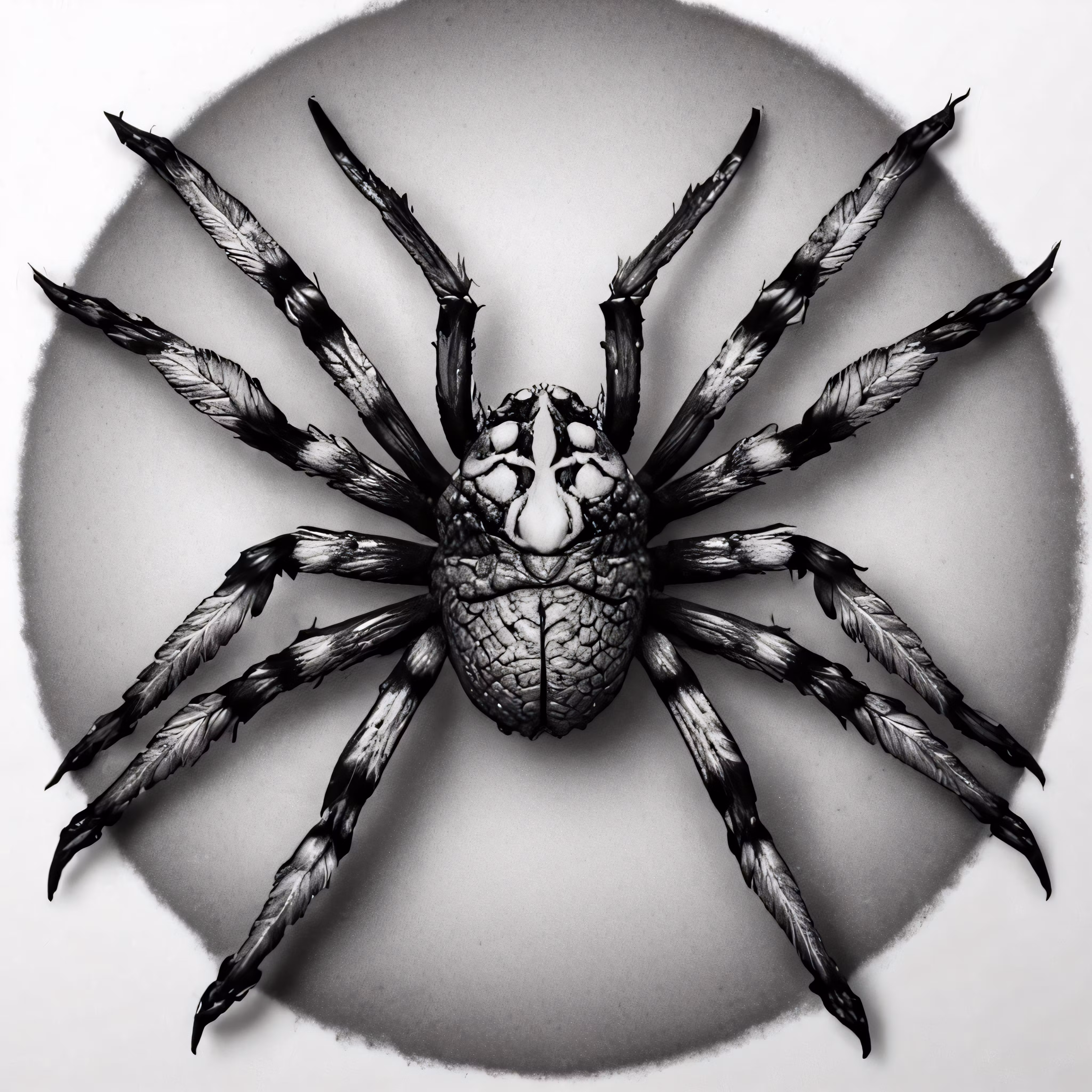 High resolution picture, free to use, black and white drawing of a spider with the back legs in