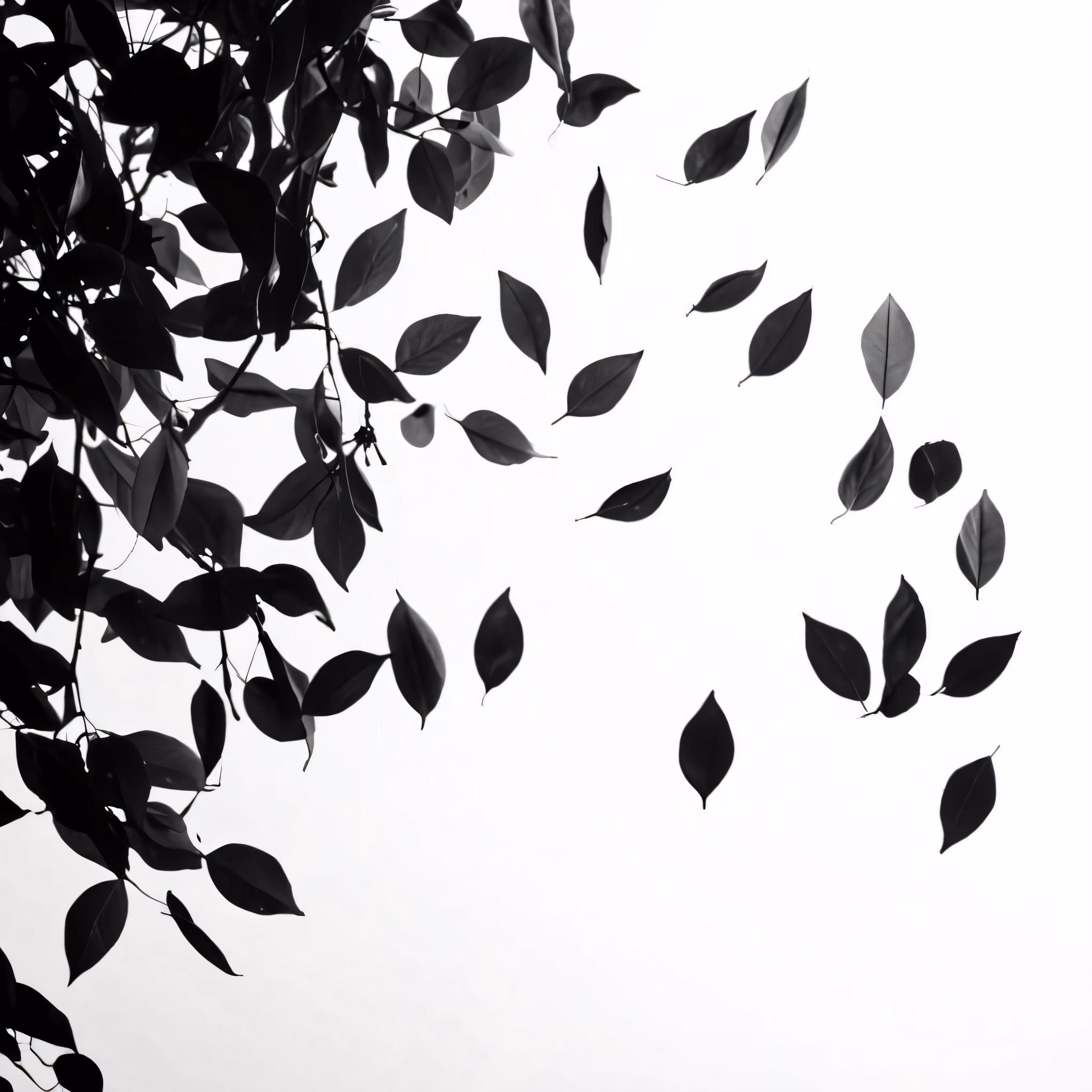 High resolution picture, free to use, black and white image of a tree with green leaves flying