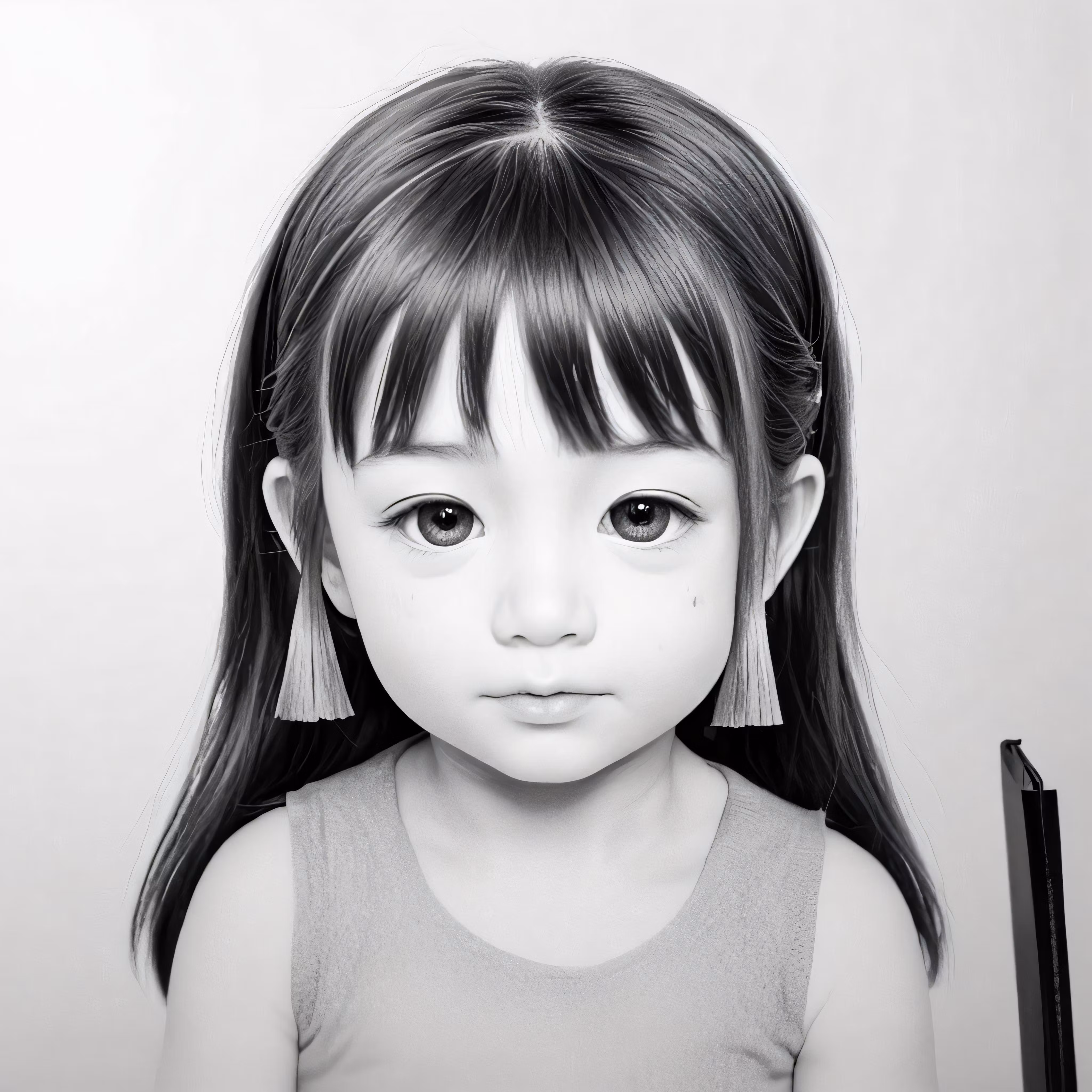High resolution picture, free to use, black and white photograph of little girl holding an umbrella