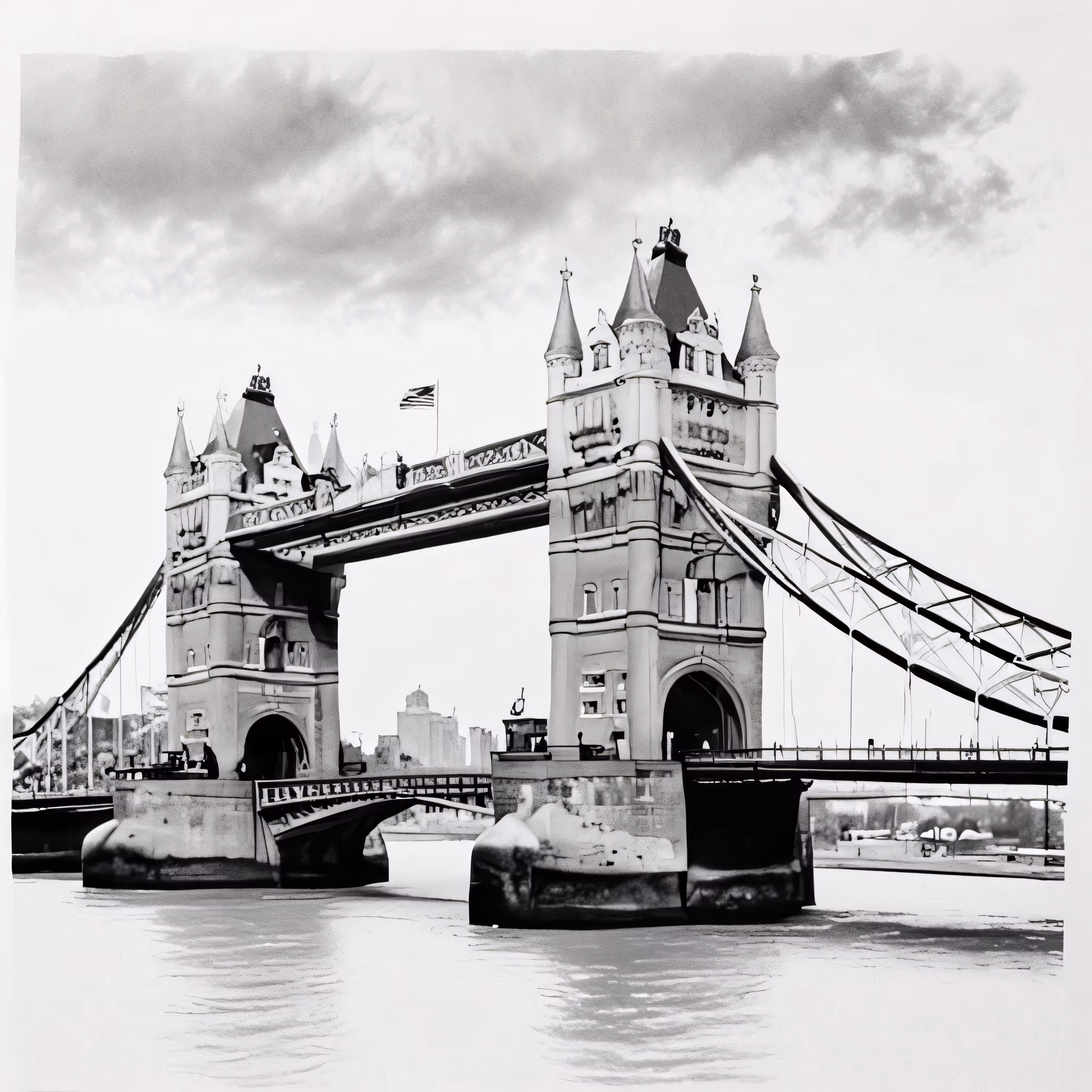 High resolution picture, free to use, black and white photograph of london bridge over water