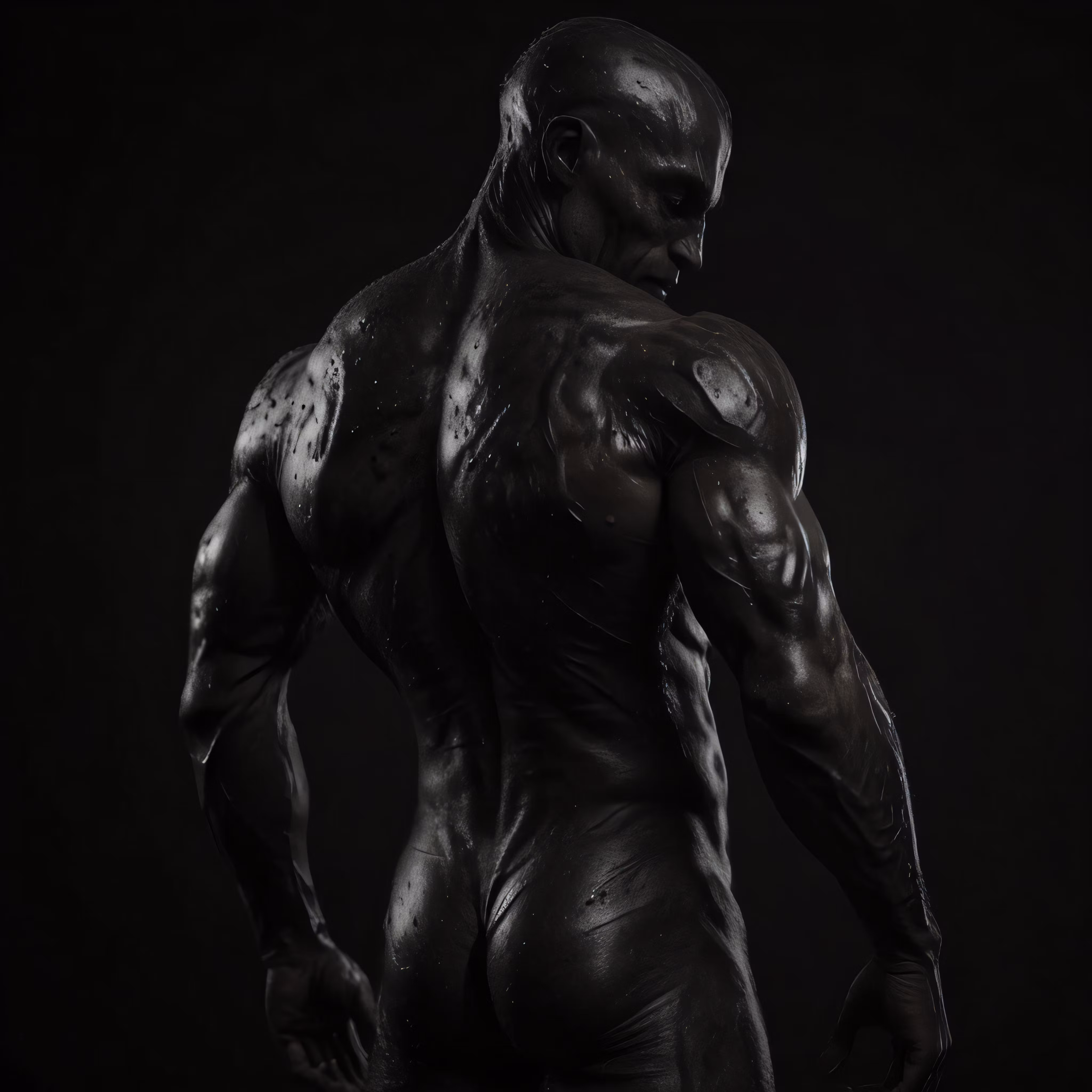 High resolution picture, free to use, black bodybuds pose for an image in the dark