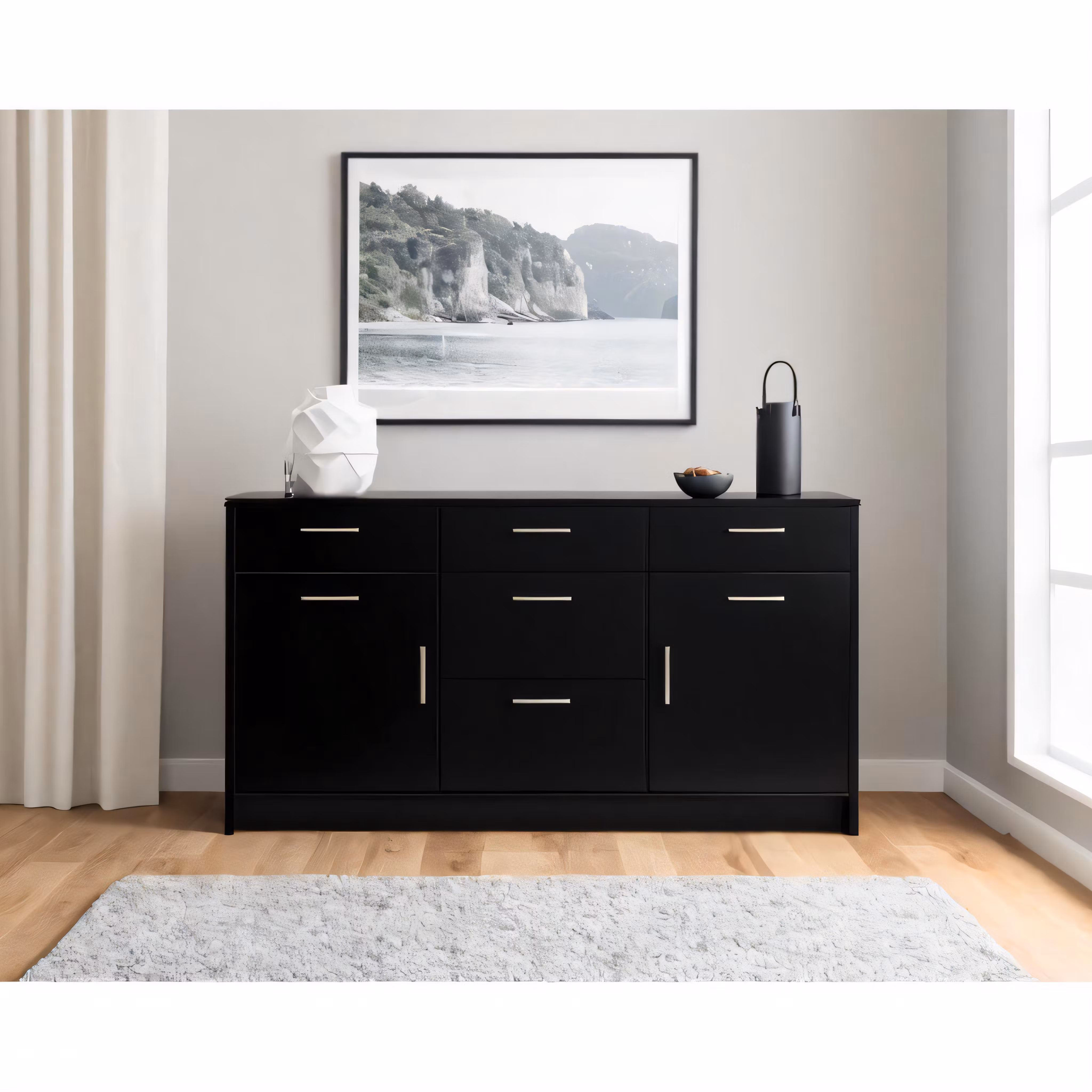 High resolution picture, free to use, black sideboard with a white vase and a poster on the wall above