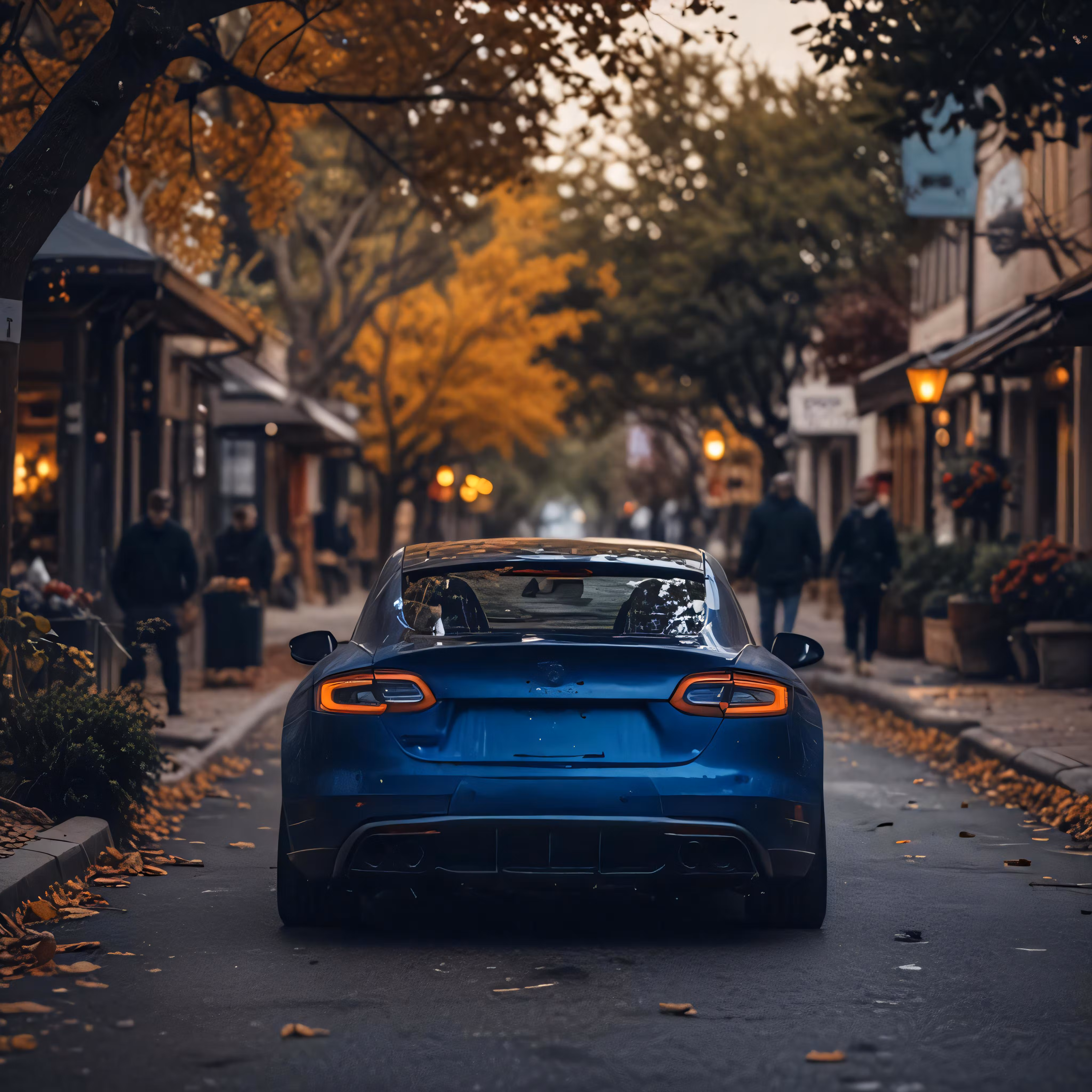 High resolution picture, free to use, blue sports car parked on street in urban setting