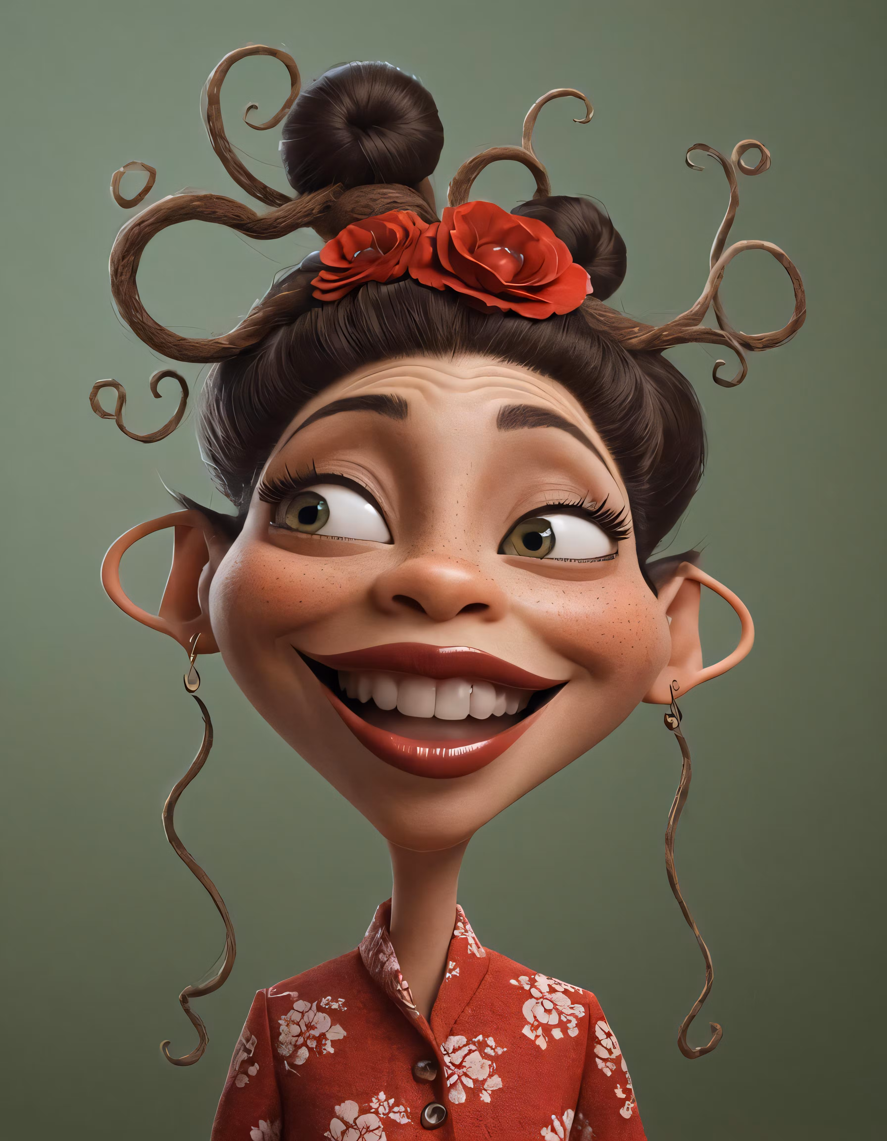 High resolution picture, free to use, cartoon character in red kimono with flowers and curls
