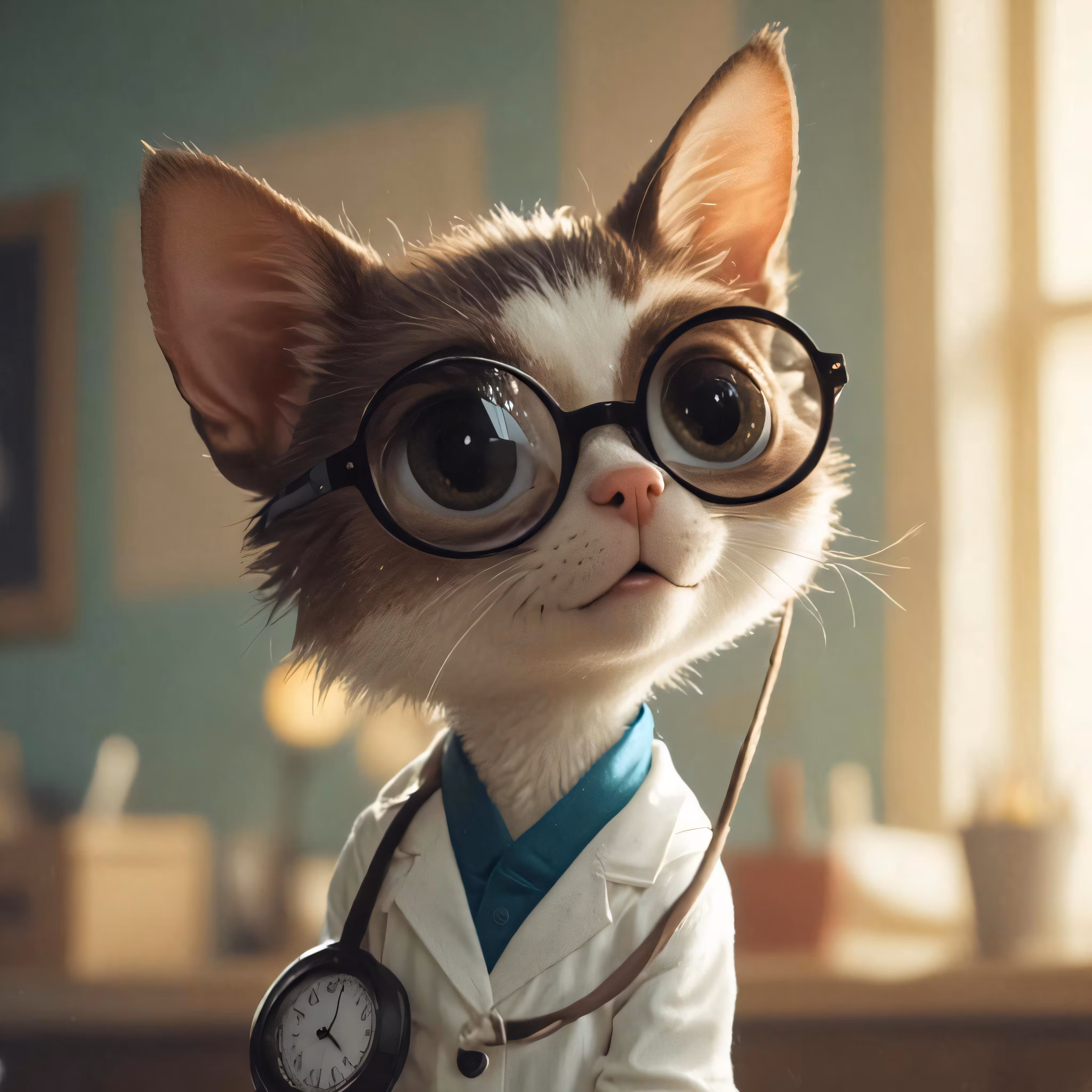 High resolution picture, free to use, cat in suit and glasses looking up at something