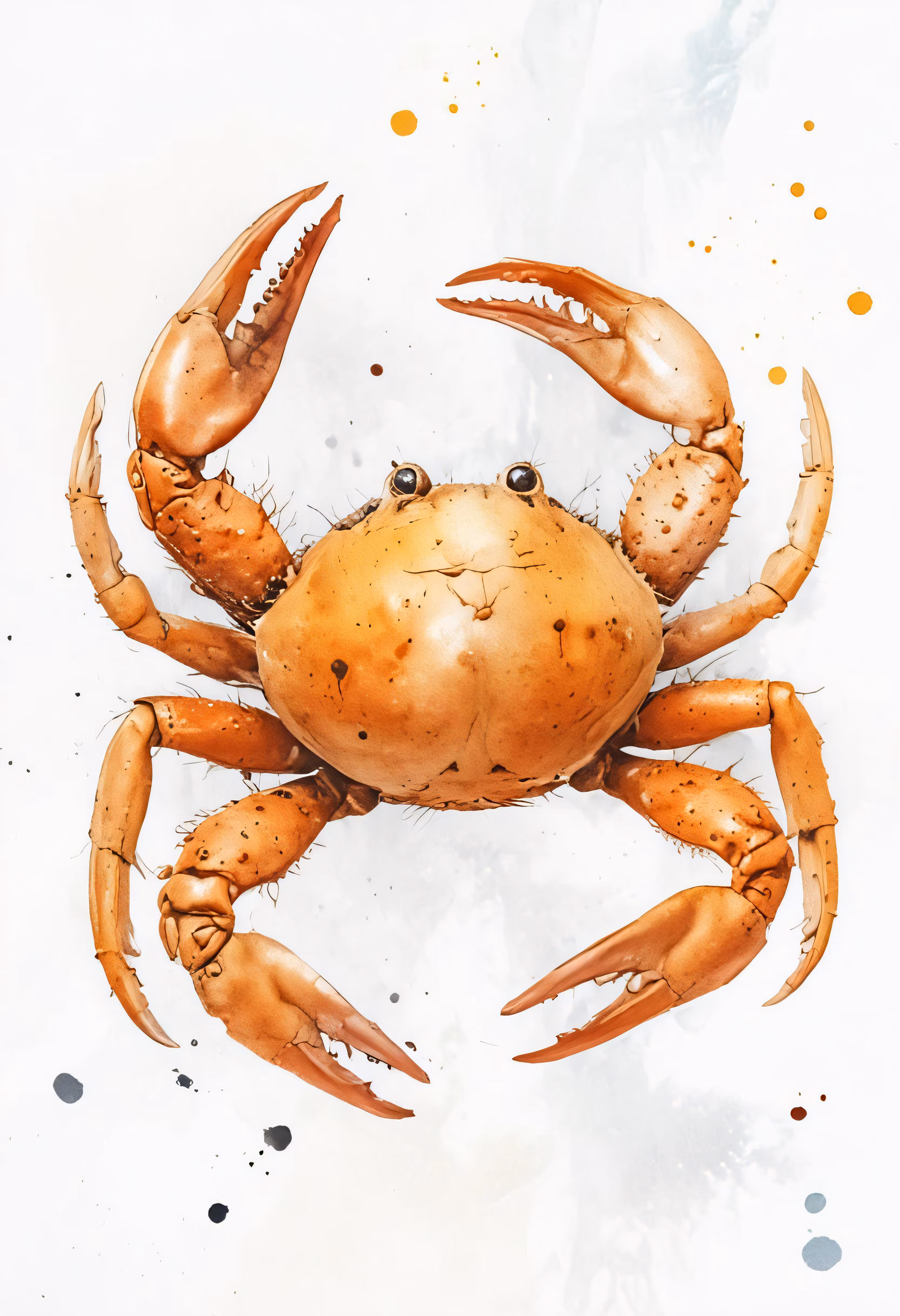 High resolution picture, free to use, crab sitting on a surface with watercolor stains