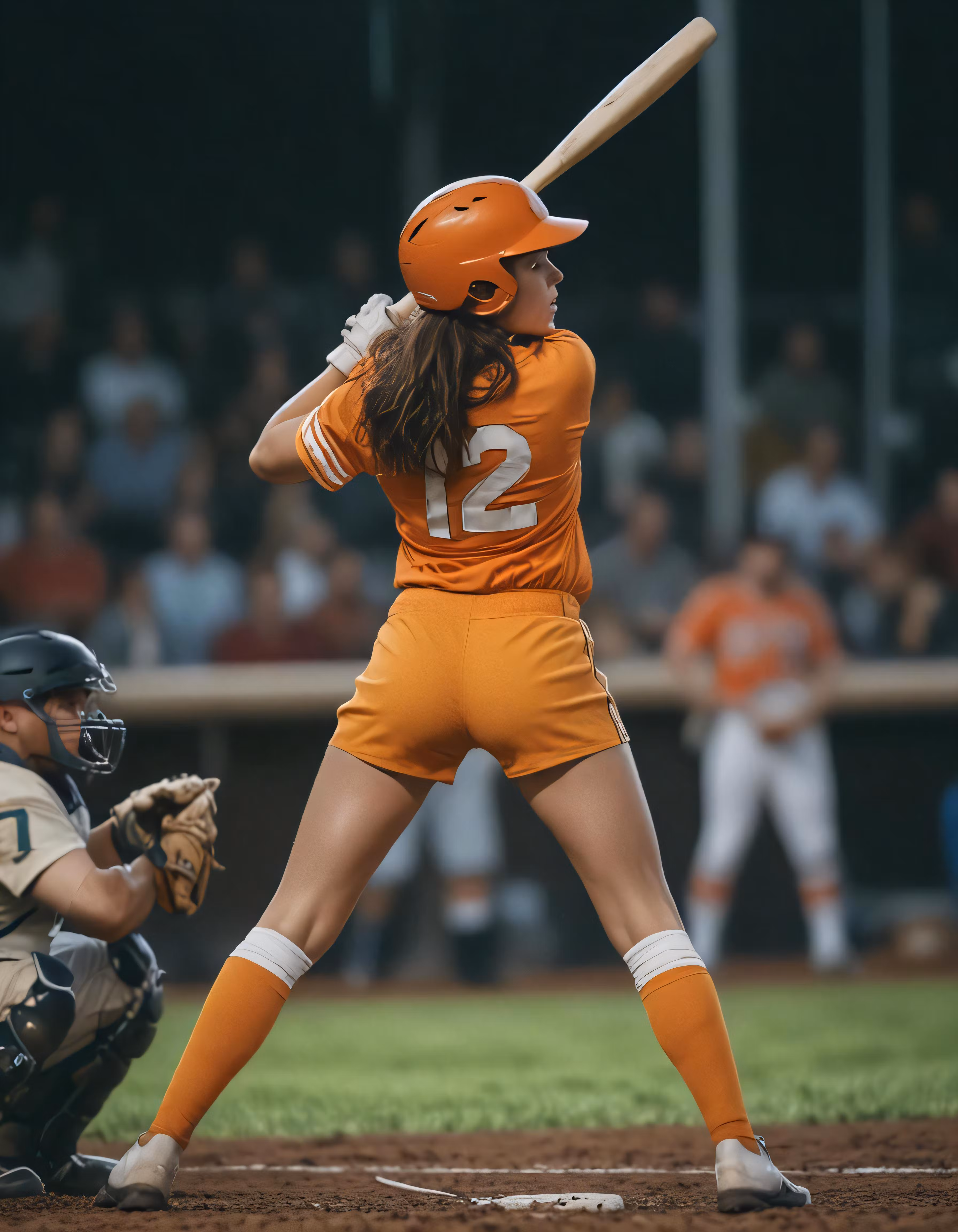 High resolution picture, free to use, female softball player at bat preparing to swing