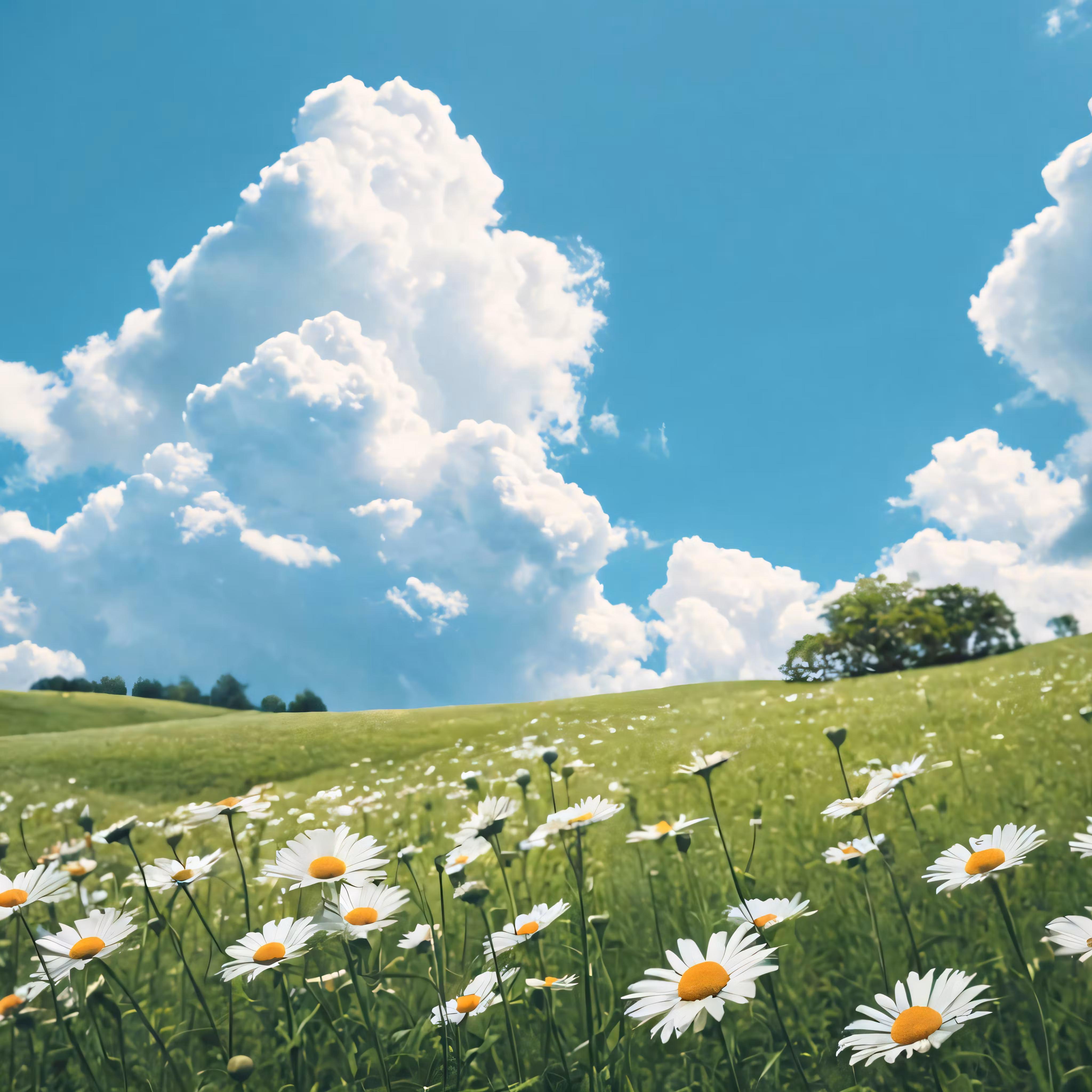 High resolution picture, free to use, field with large white flowers under a blue sky