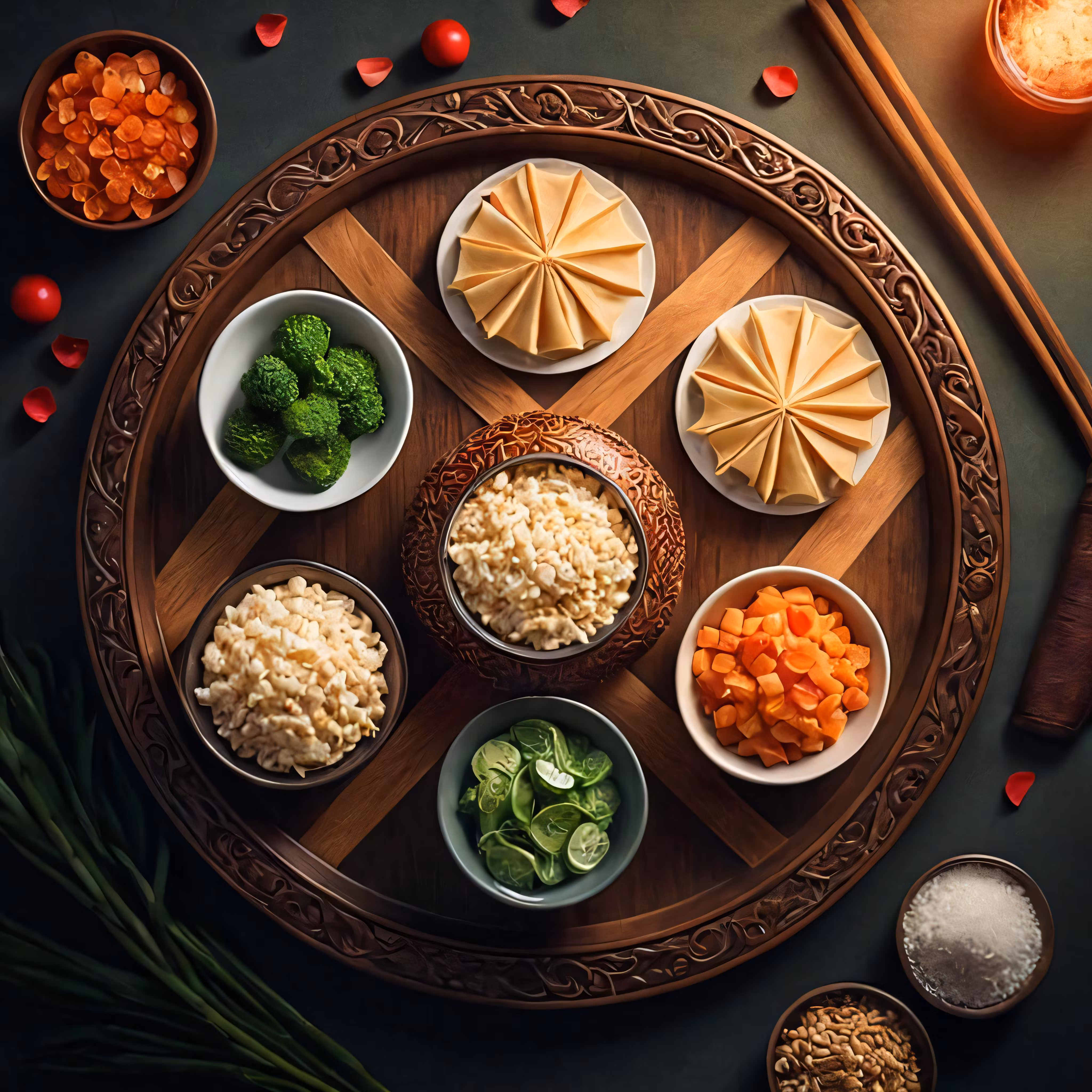 High resolution picture, free to use, four asian bowls with different kinds of food