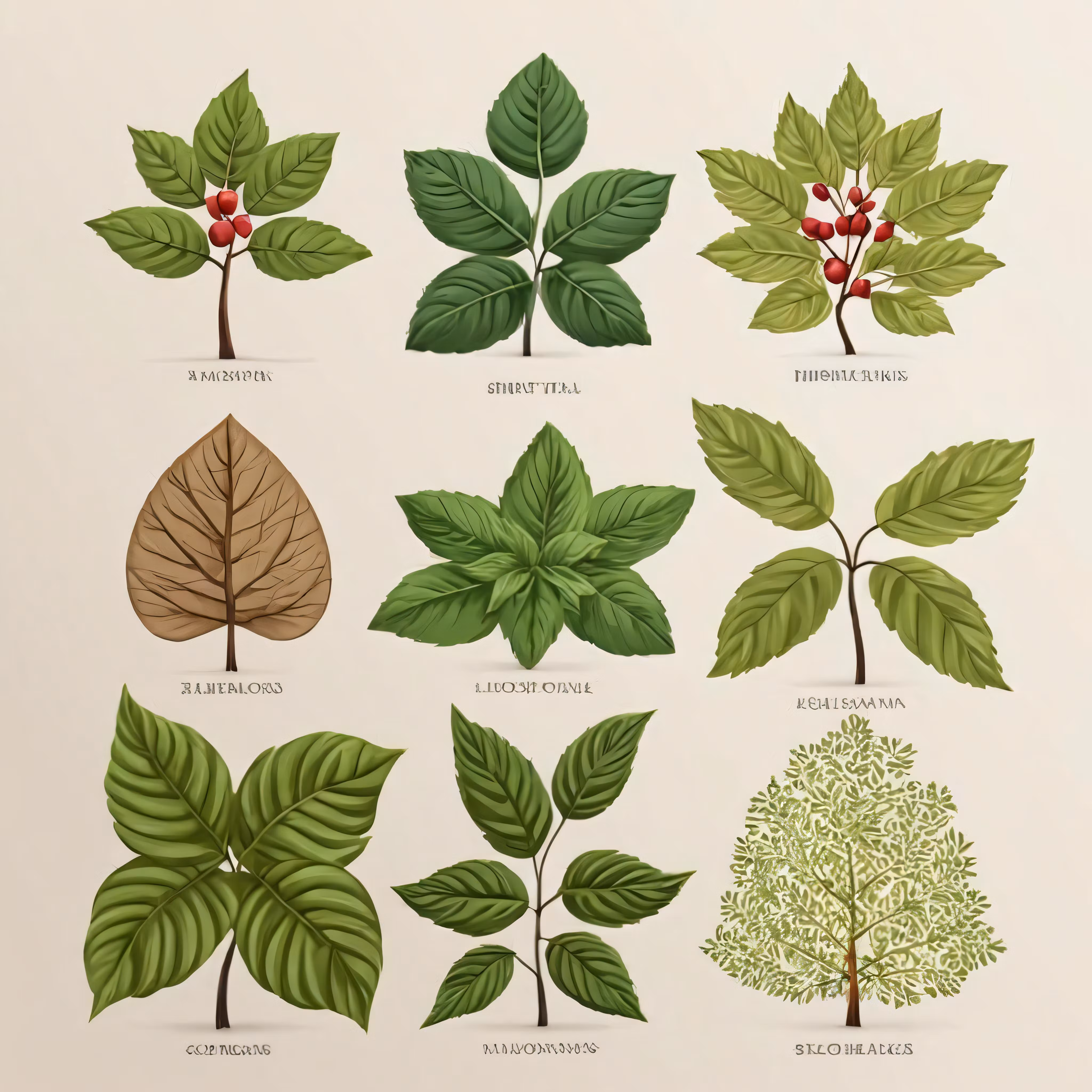 High resolution picture, free to use, four different types of leaves, including the first one has the same color