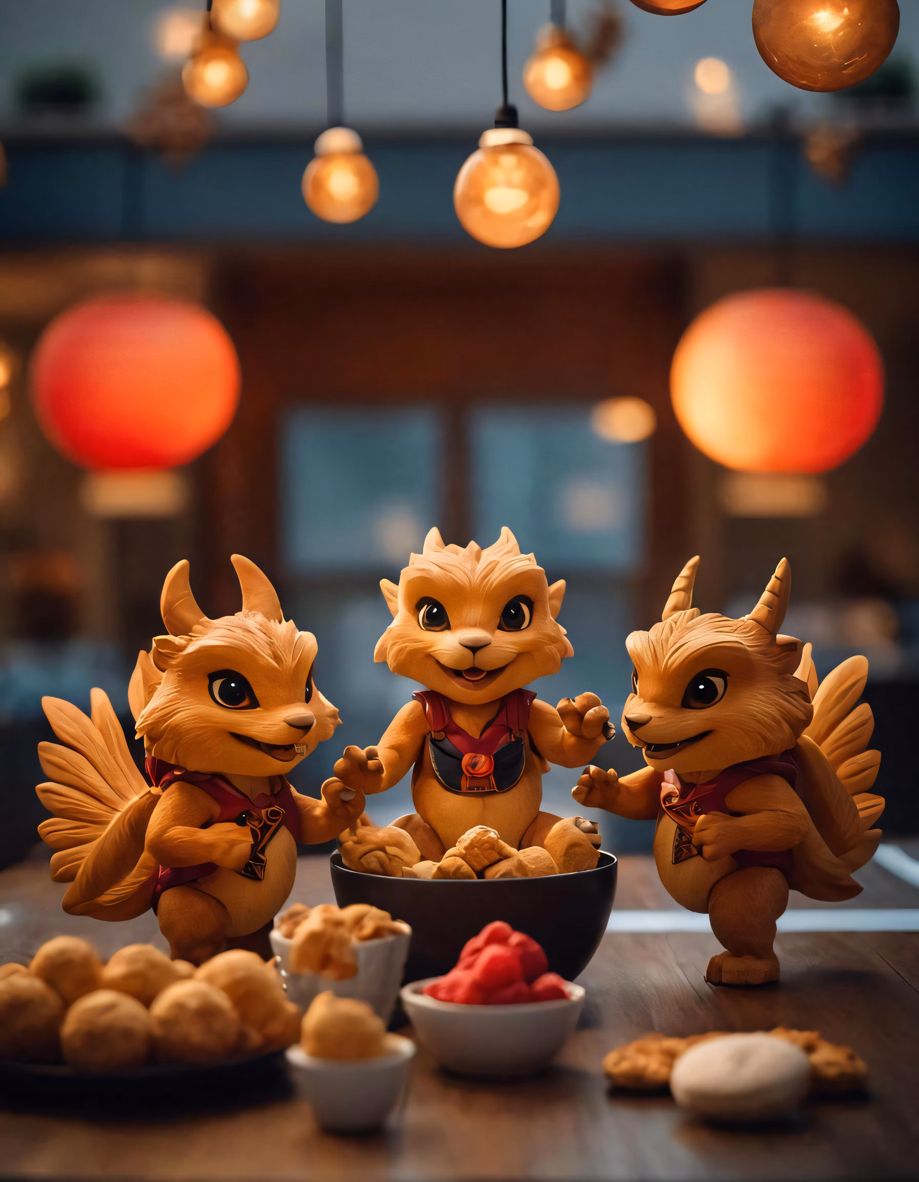 High resolution picture, free to use, four little figurines standing by a bowl of fruit