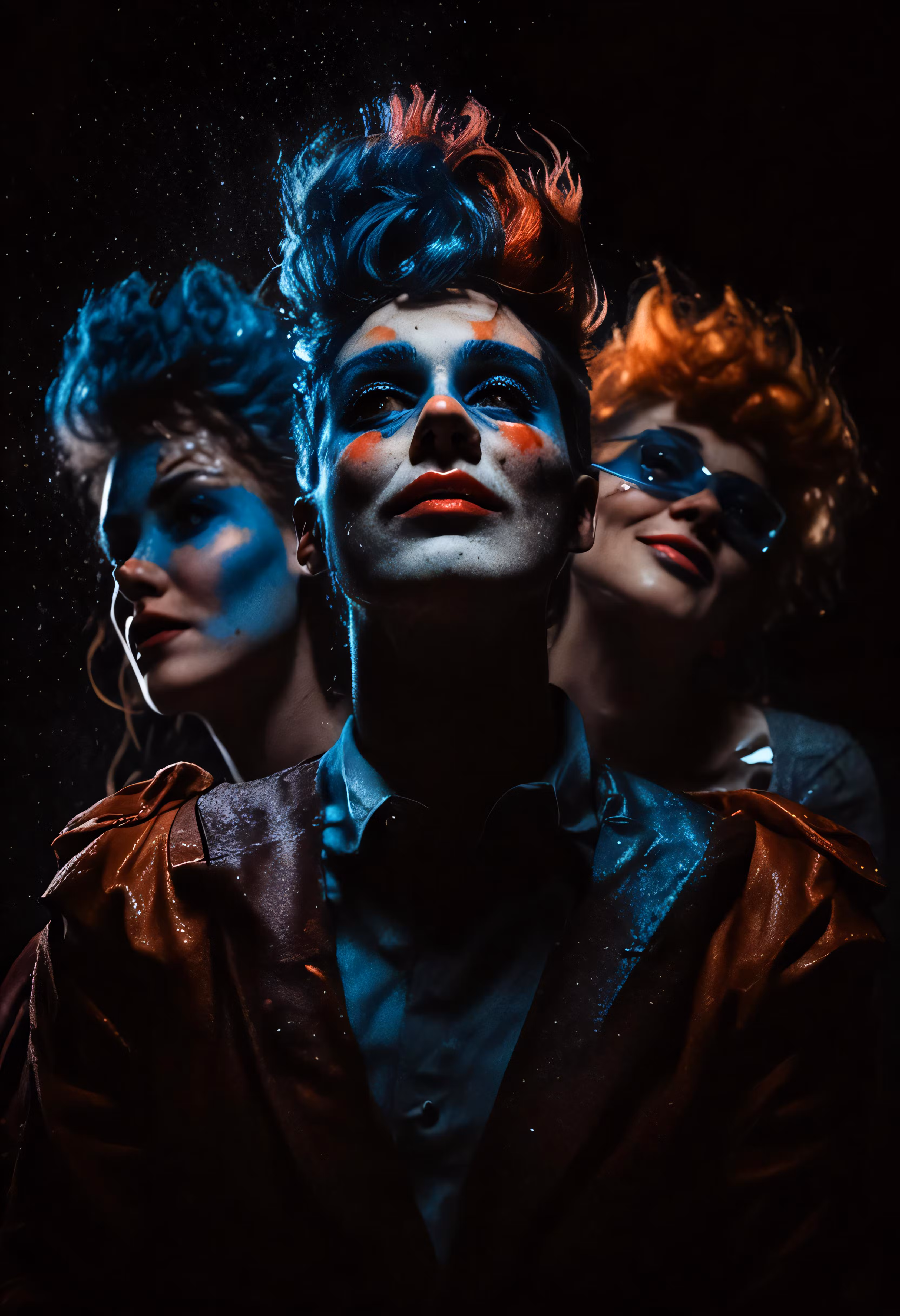 High resolution picture, free to use, four people with painted faces and different colored hair