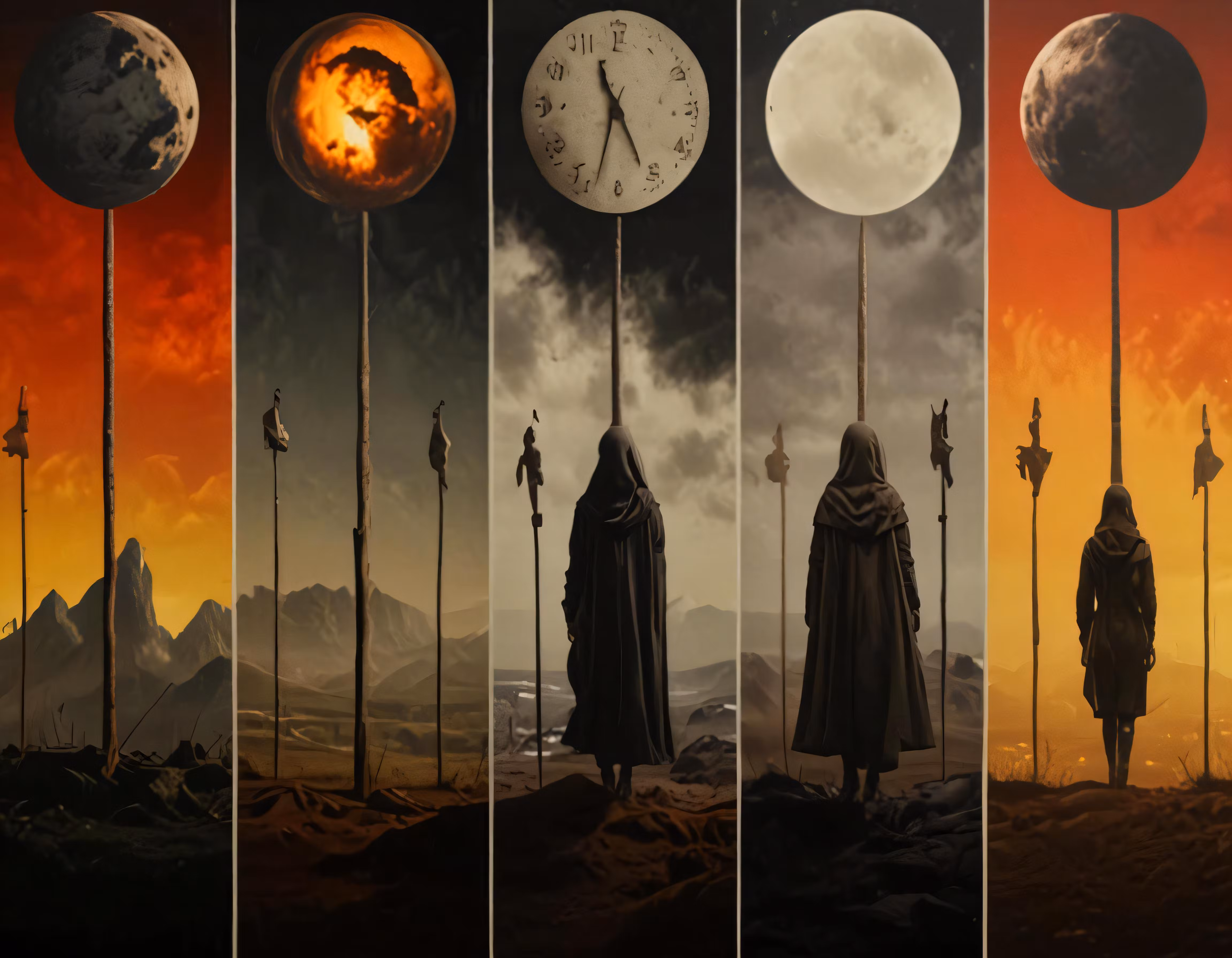 High resolution picture, free to use, four pictures of people, some of whom are standing and watching the sky