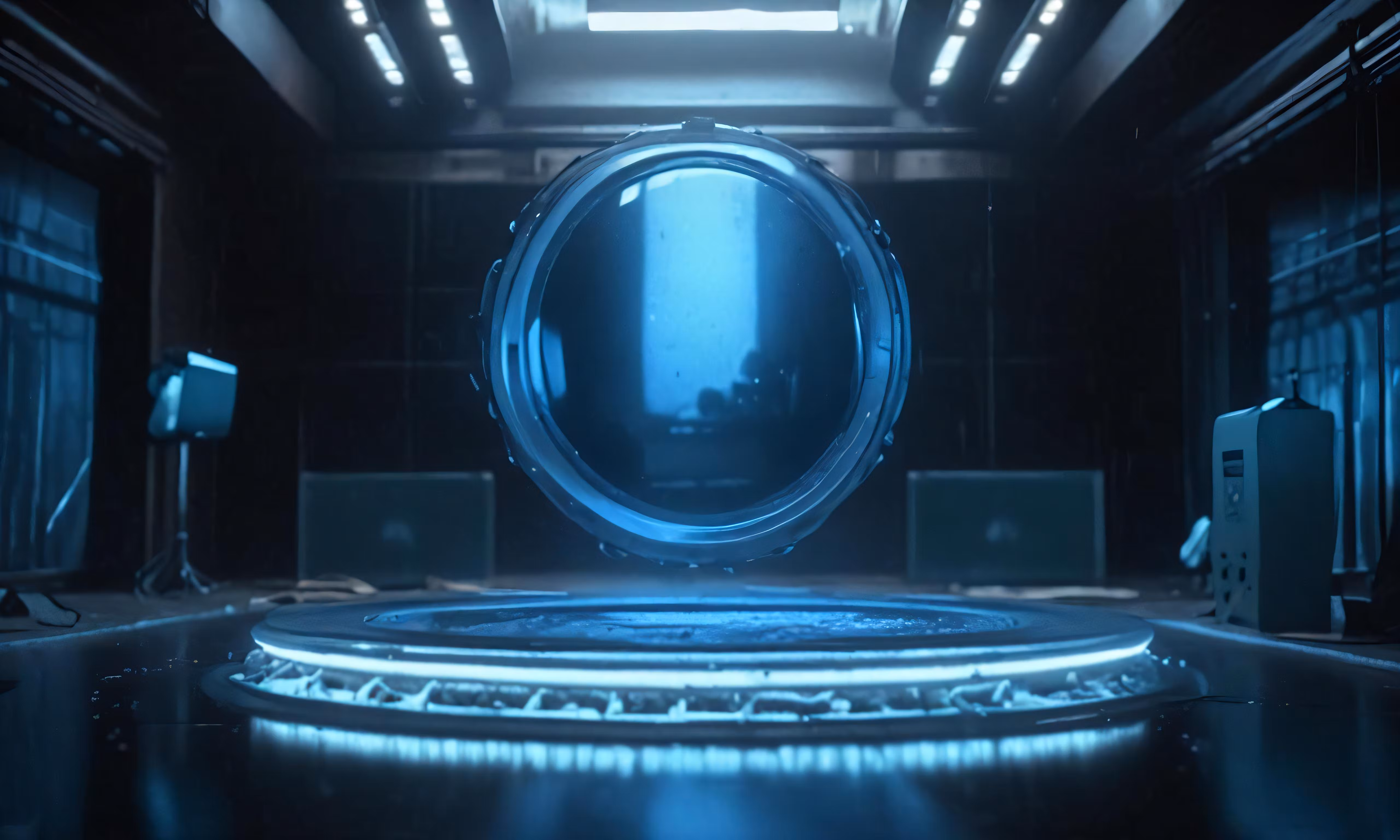 High resolution picture, free to use, futuristic dark blue room with many lights