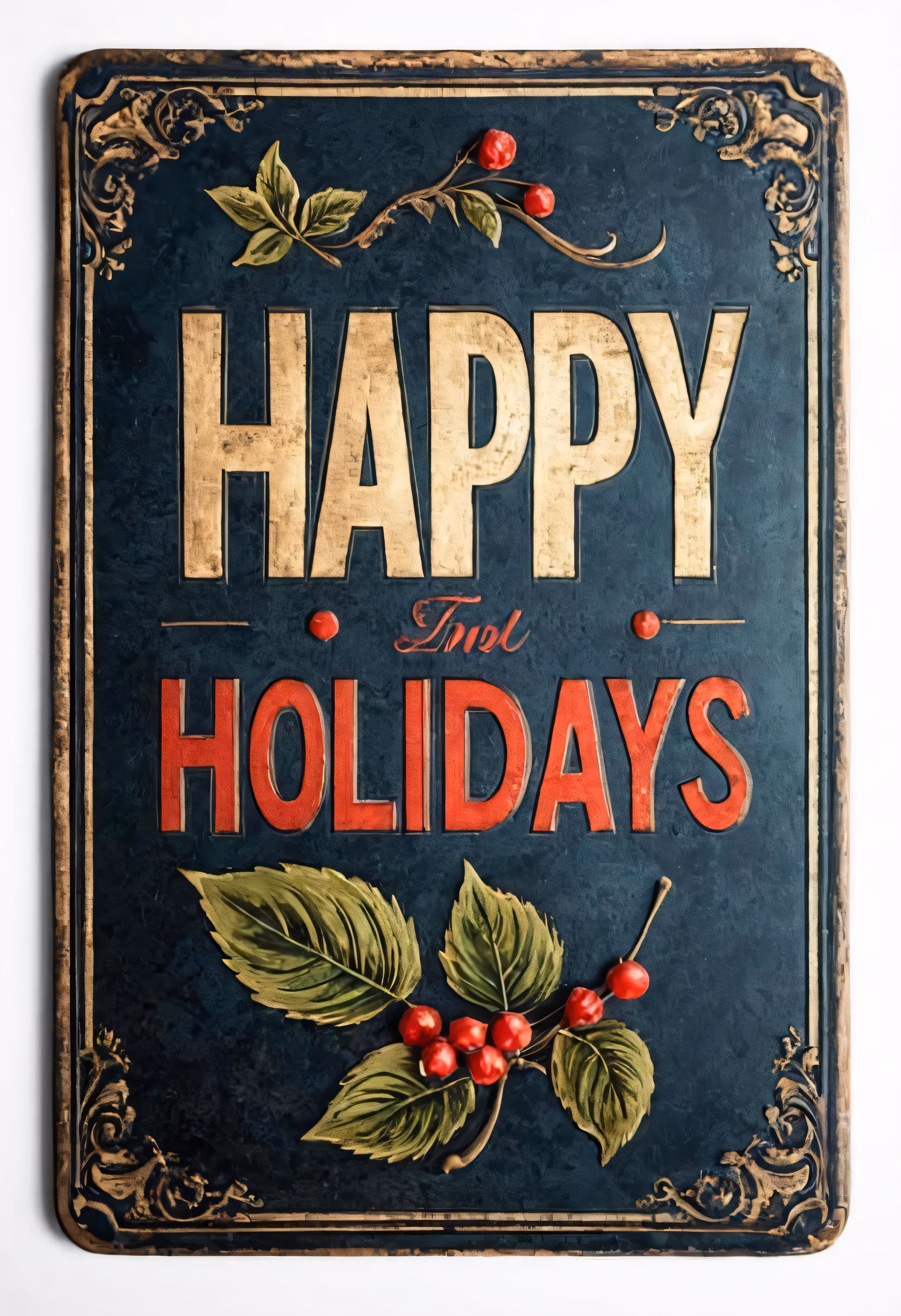 High resolution picture, free to use, happy holidays are spelled on the side of this metal sign
