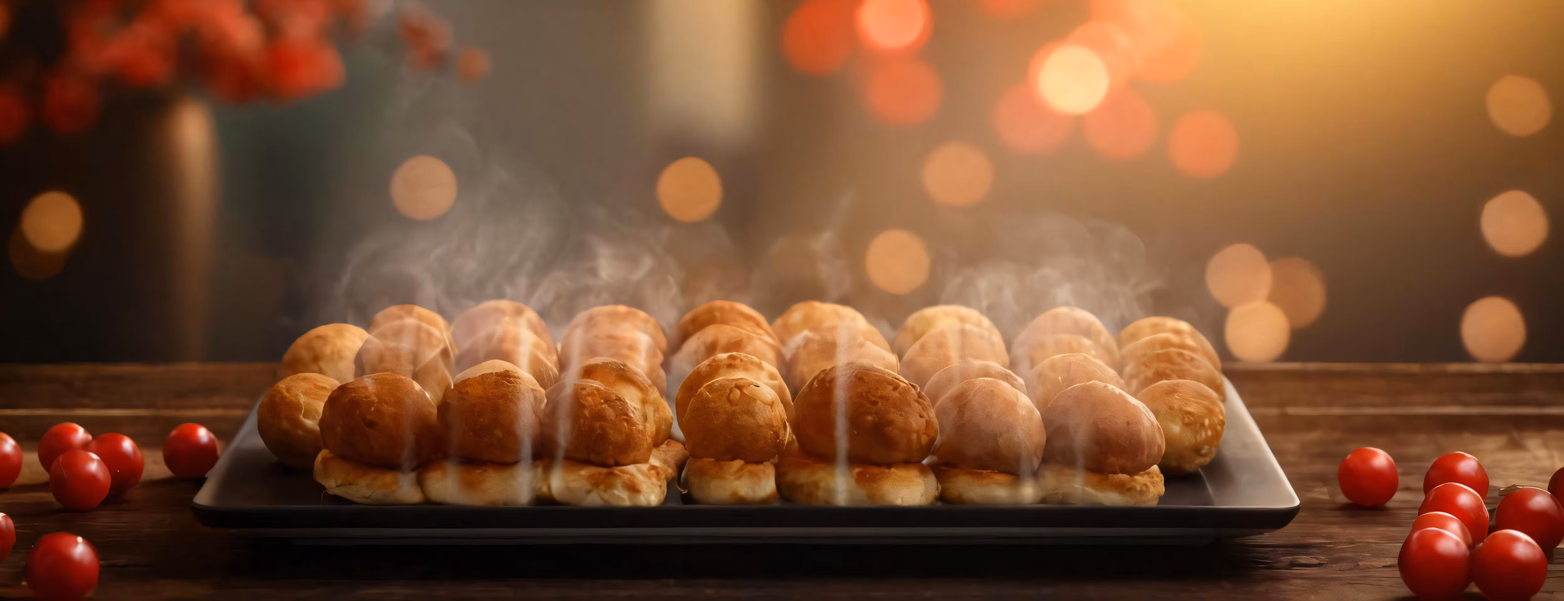High resolution picture, free to use, hot dogs wrapped in puff pastry are sitting on a black plate