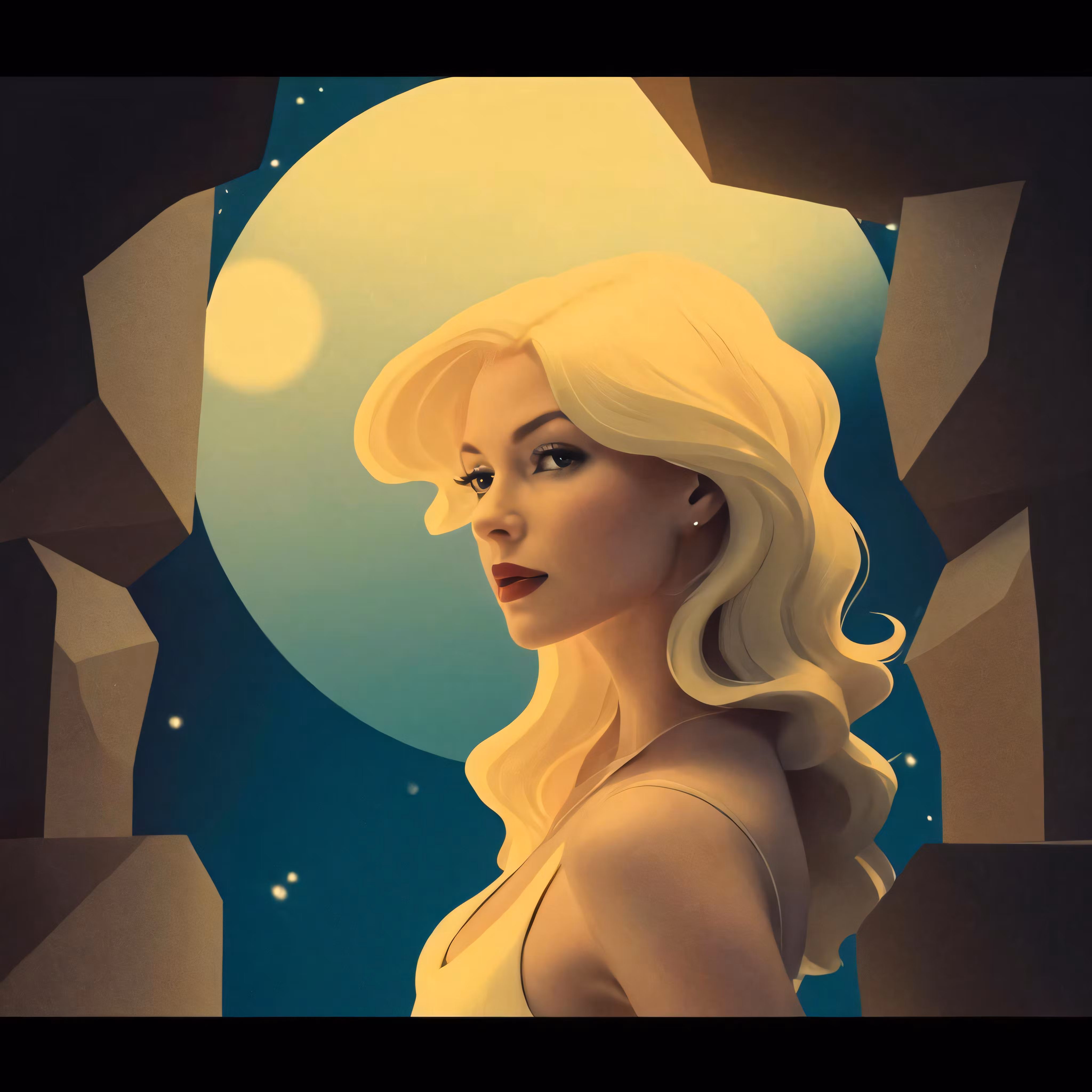 High resolution picture, free to use, lady with blond hair staring intently at the moon