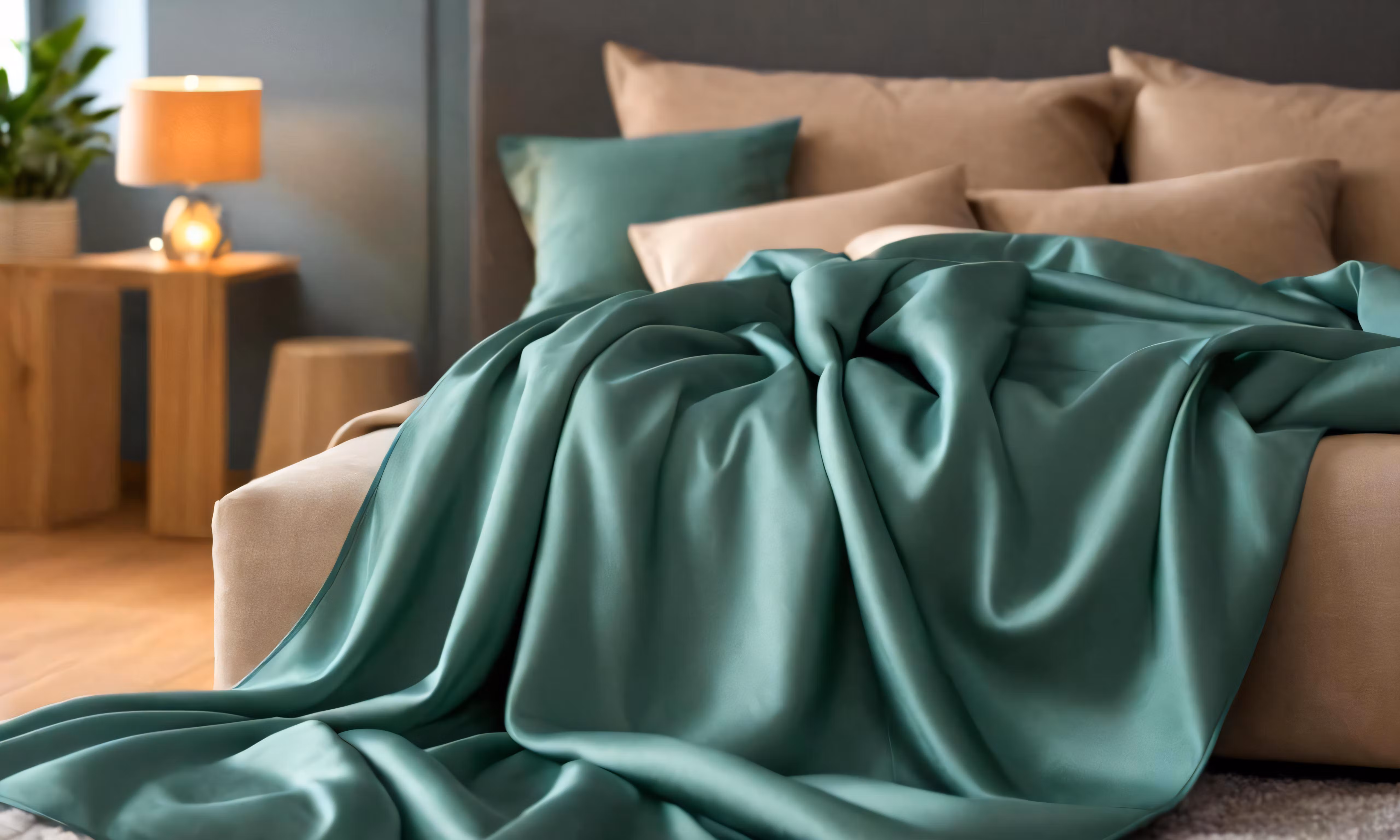 High resolution picture, free to use, large blanket on the couch next to table and table lamp