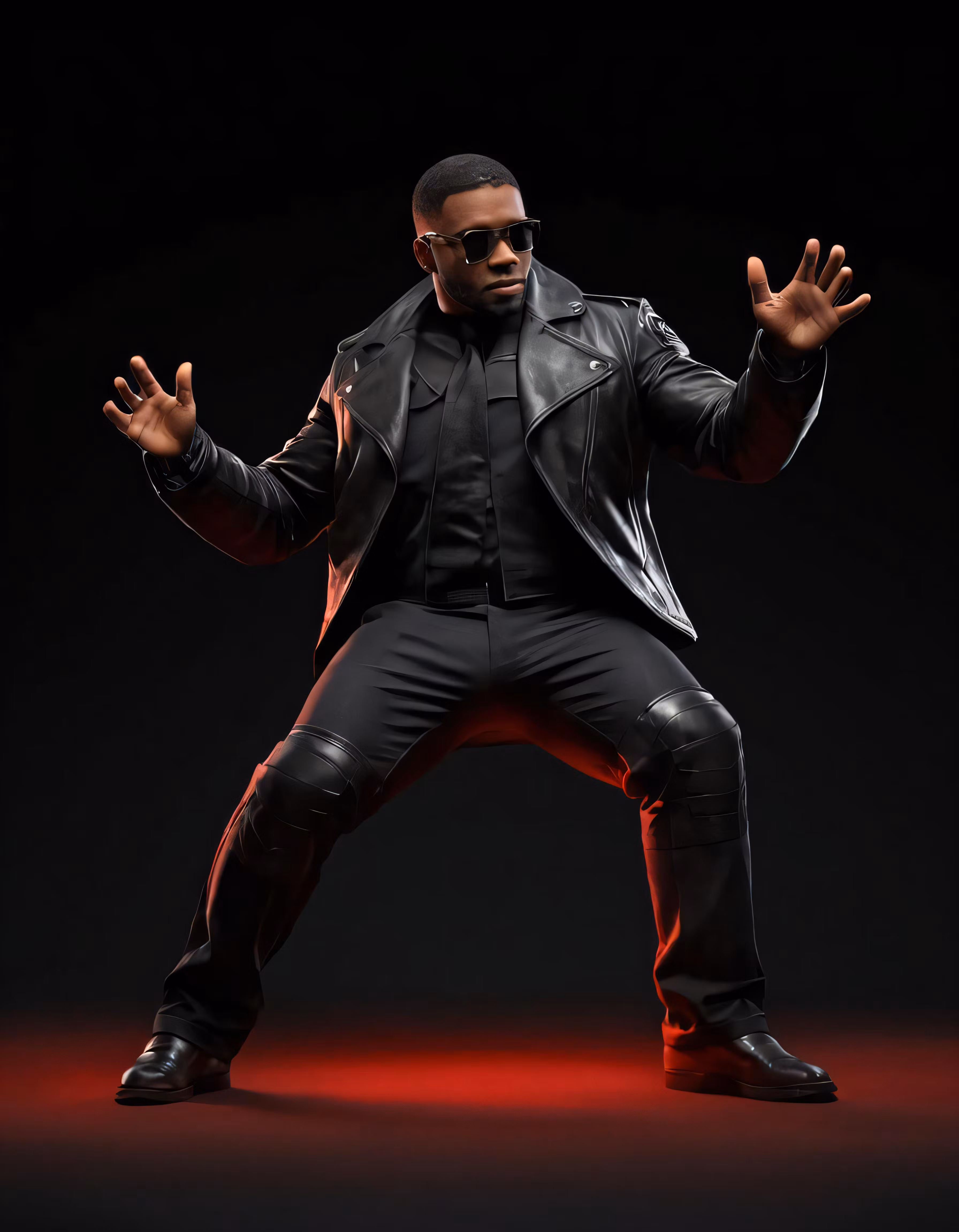 High resolution picture, free to use, man in leather outfit dancing on a dark background