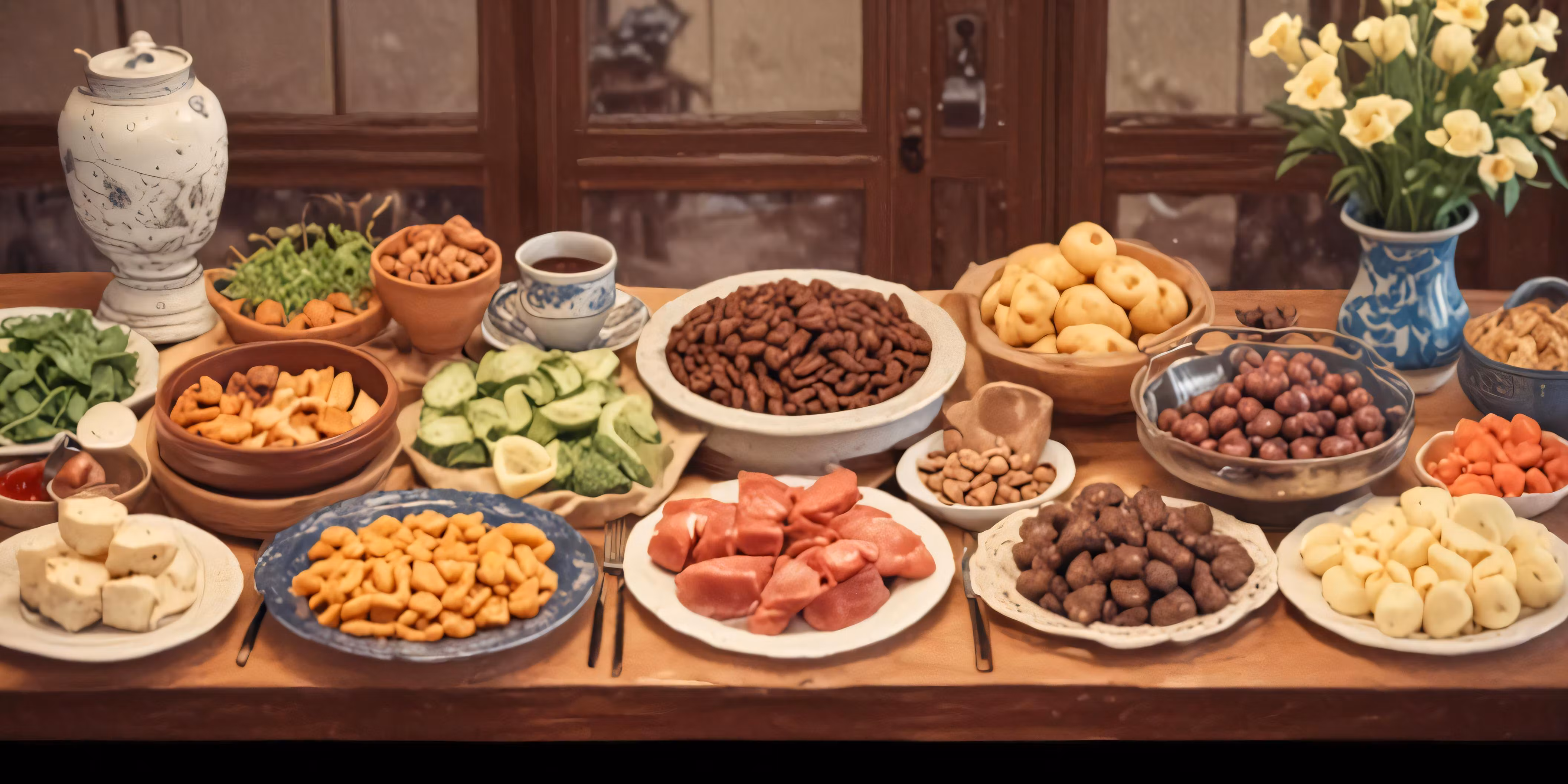 High resolution picture, free to use, many bowls with different fruits and veggies on a table