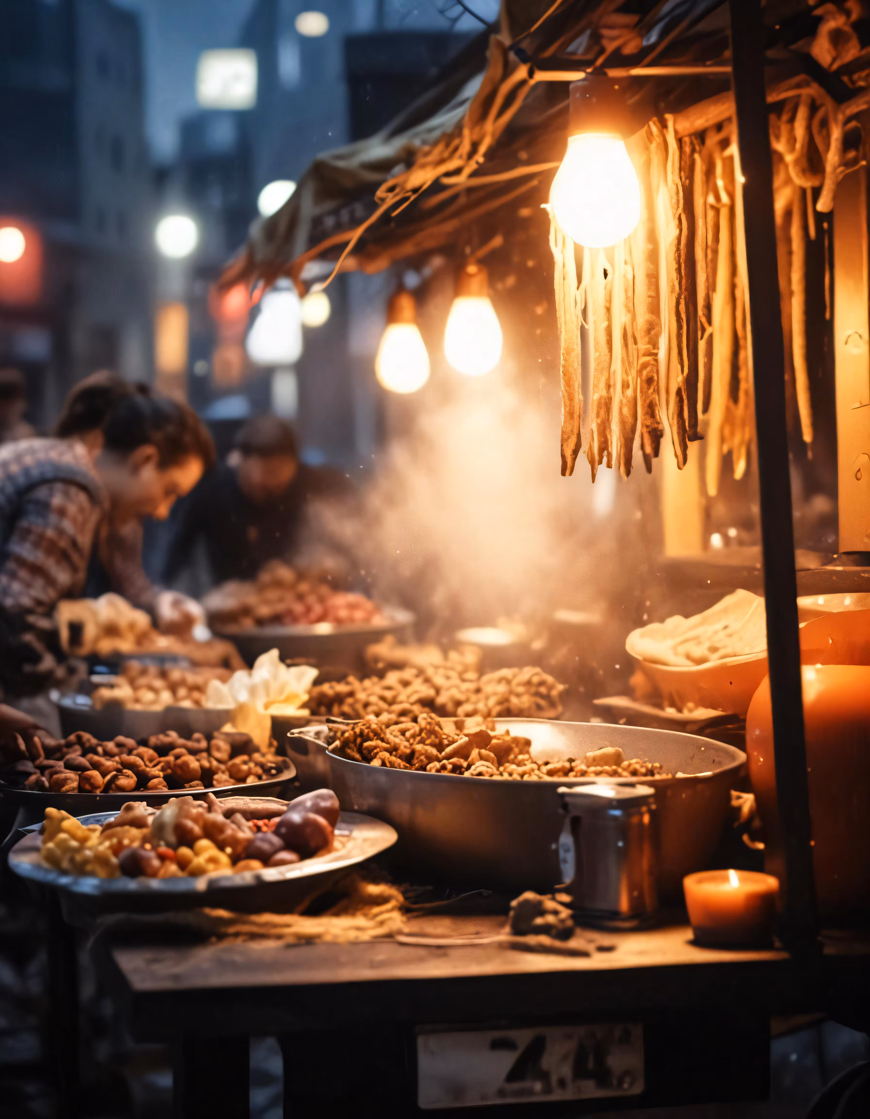 High resolution picture, free to use, many plates of food are placed outside at a stand