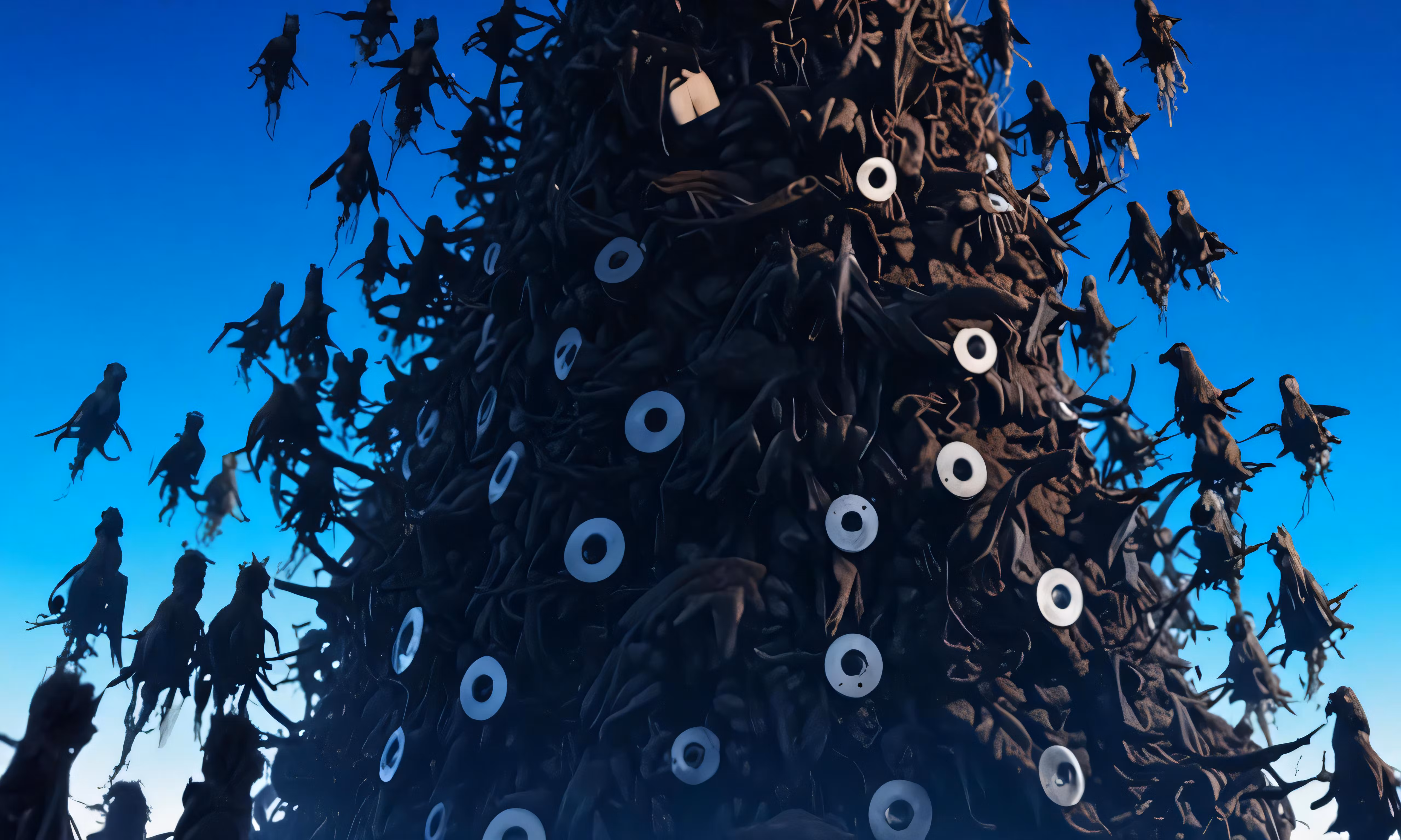 High resolution picture, free to use, many tree made with different pieces of material and white dots