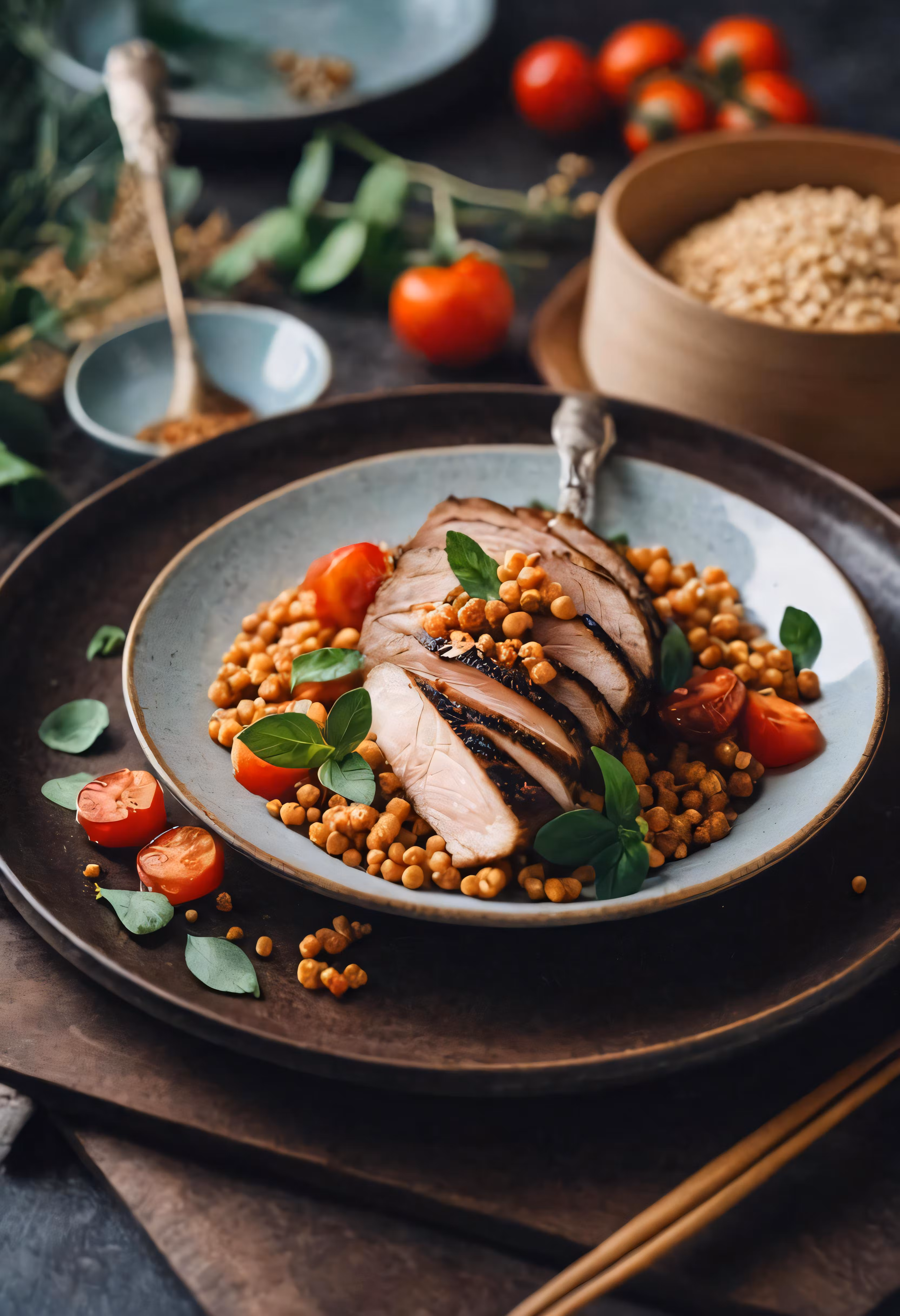 High resolution picture, free to use, meat and vegetables sitting on a plate with chopsticks