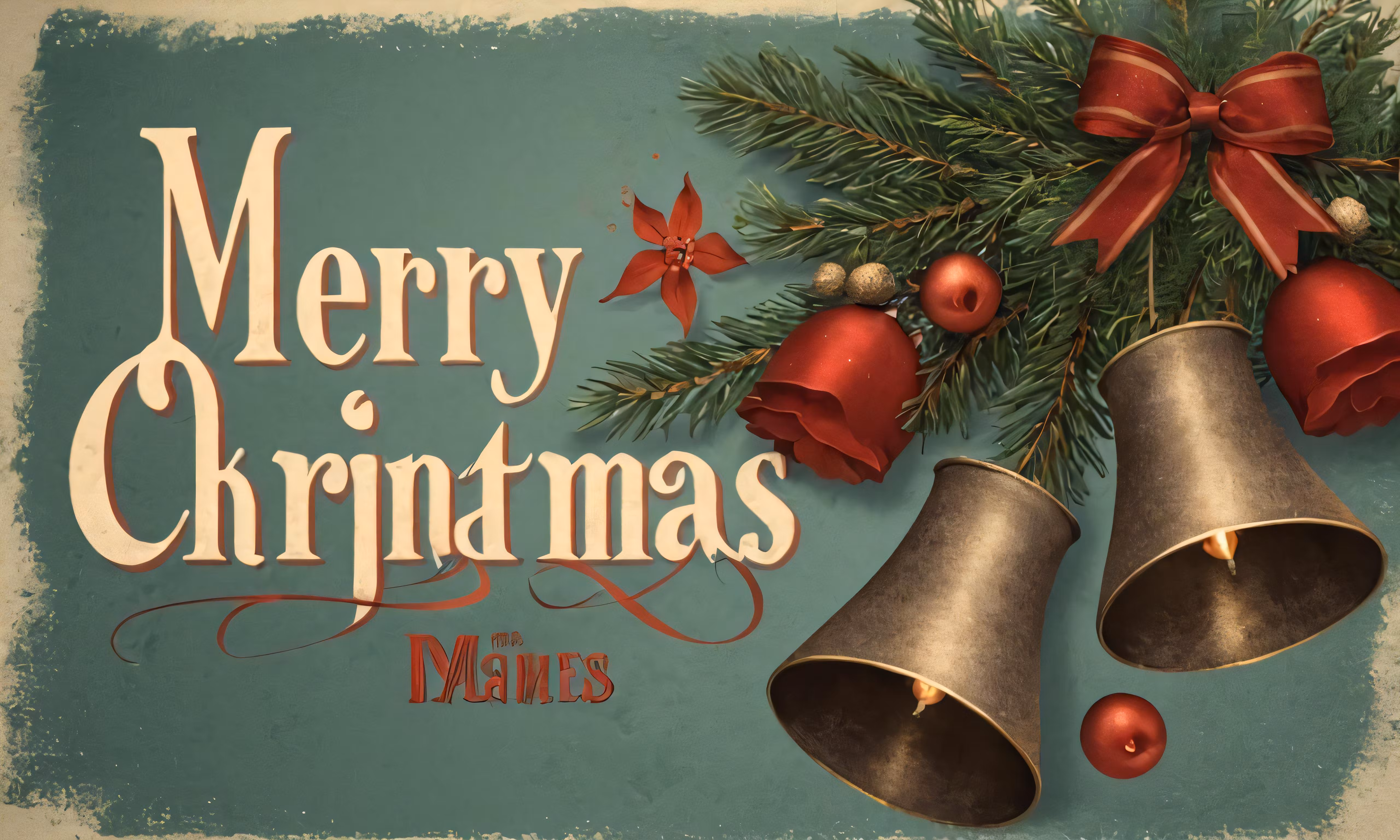 High resolution picture, free to use, merry christmas greetings and bell with decorations