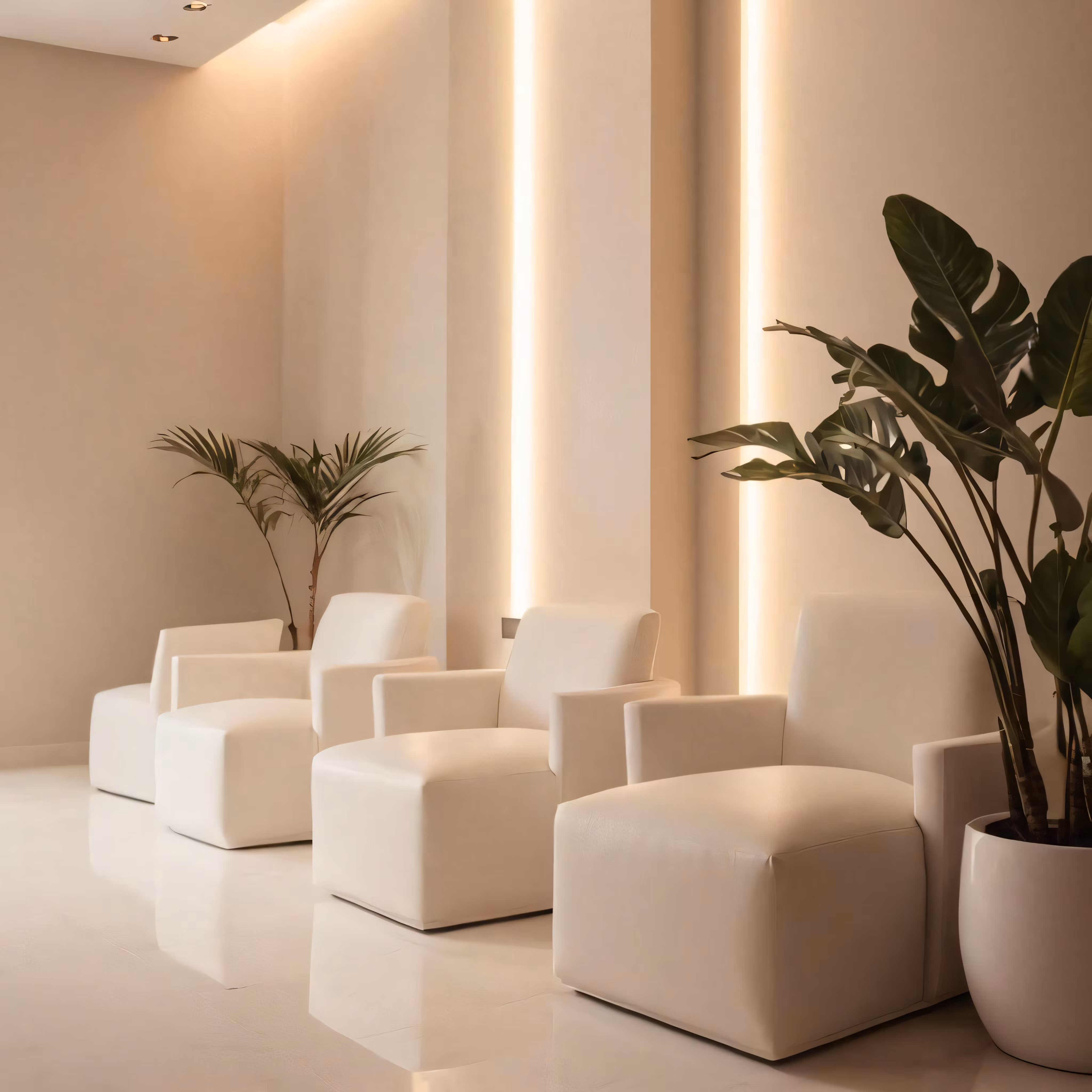 High resolution picture, free to use, modern minimalist living room with seating in white