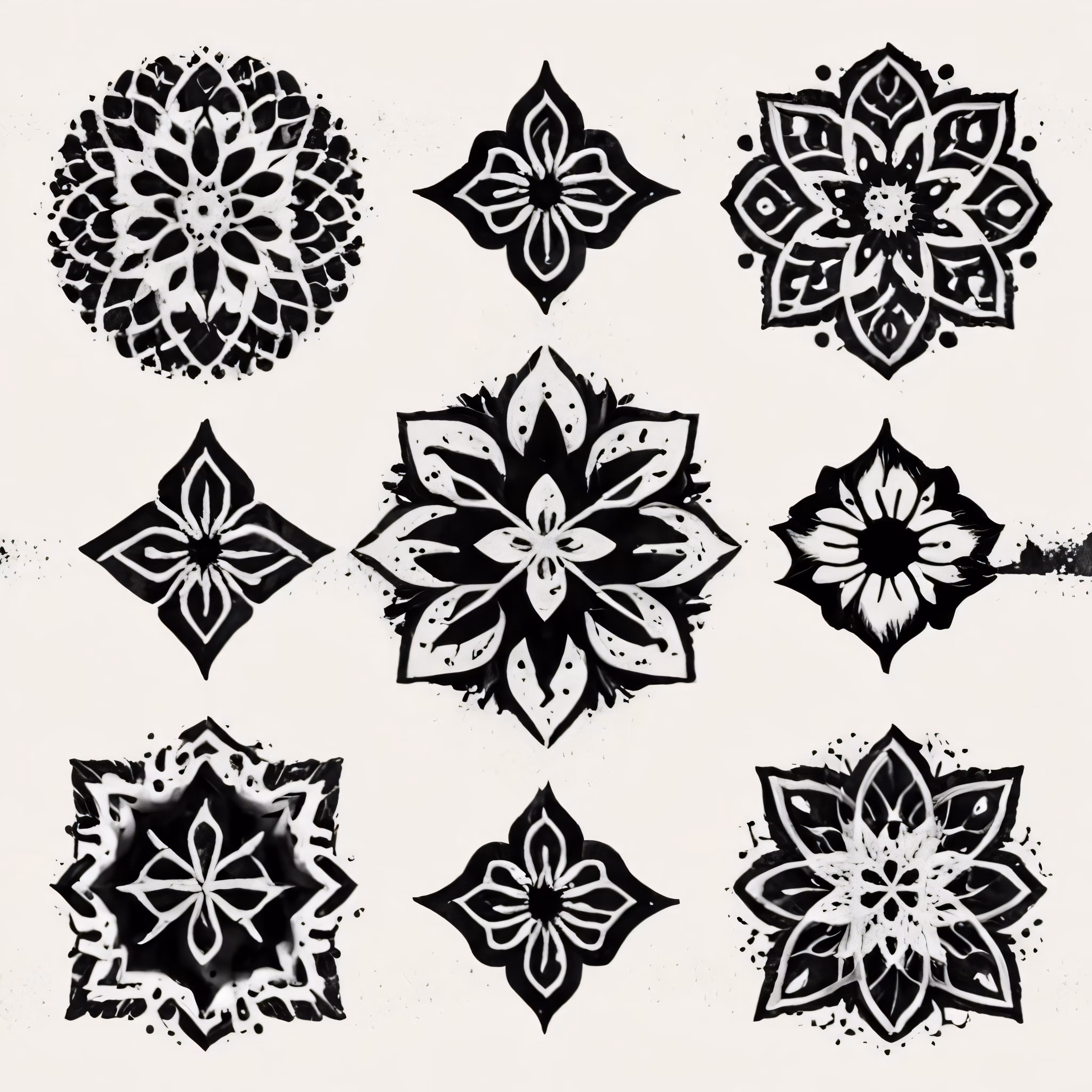 High resolution picture, free to use, nine abstractly stylized black and white flowers