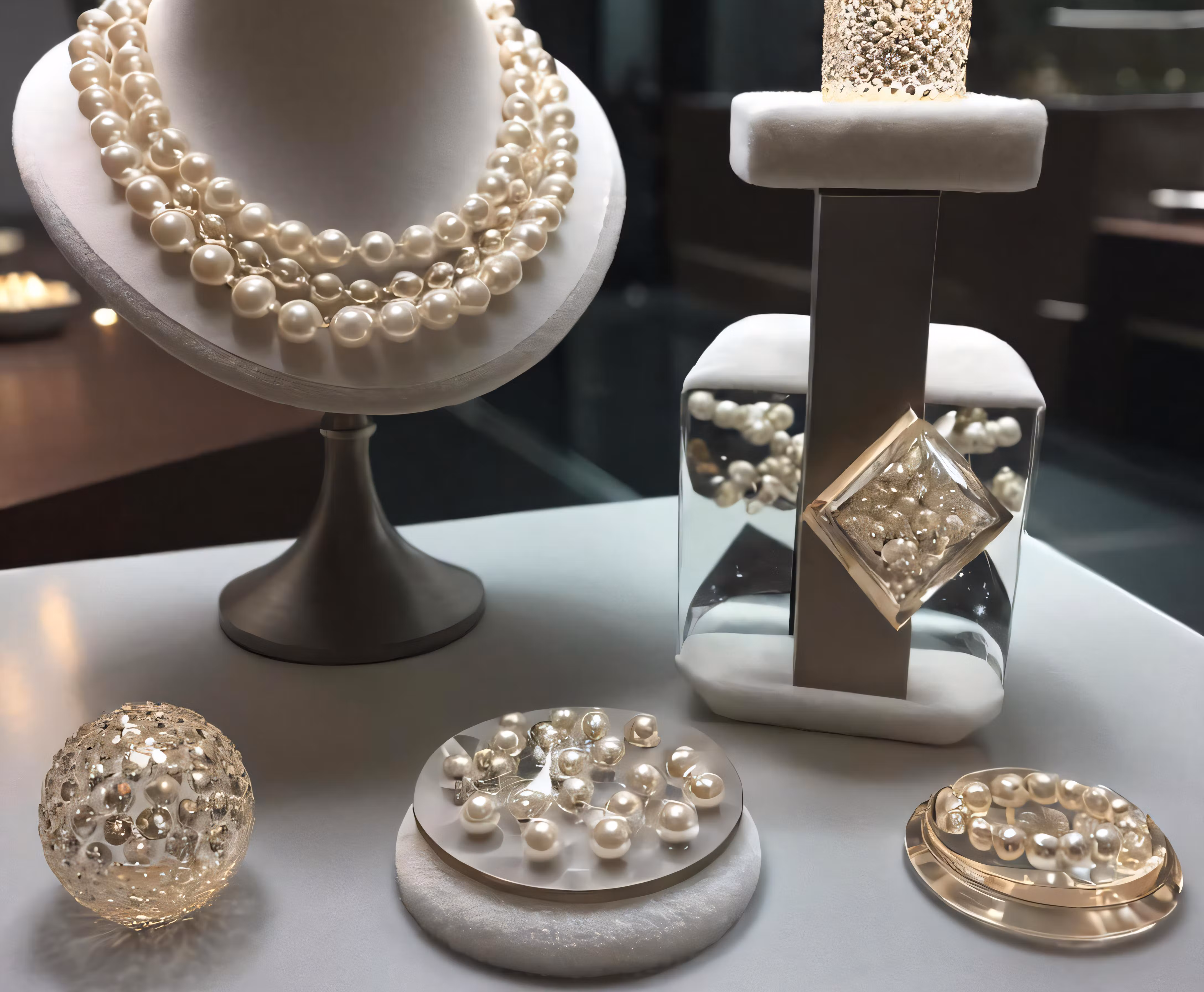 High resolution picture, free to use, pearls and jewelry on display at a museum