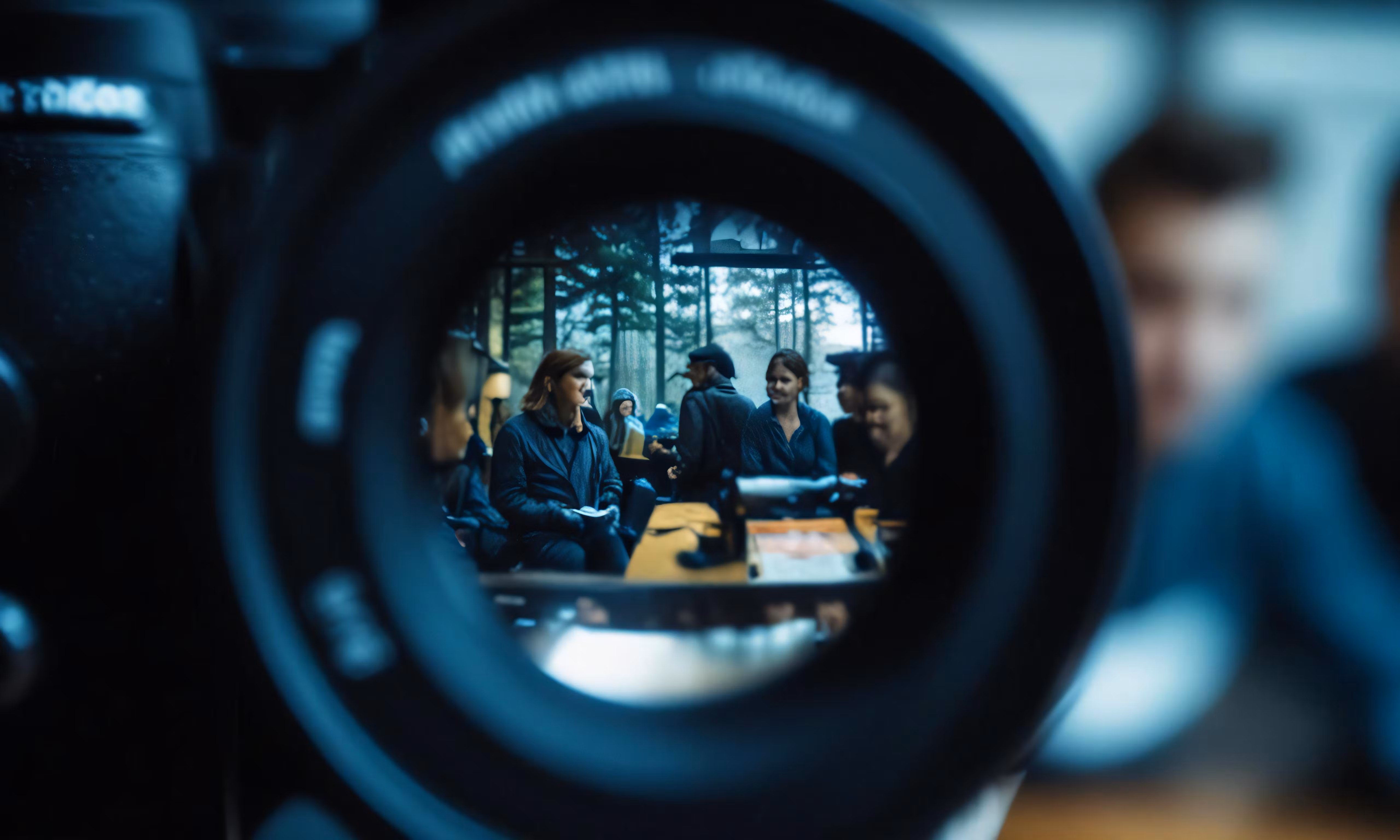 High resolution picture, free to use, people are talking outside with a camera in front of them