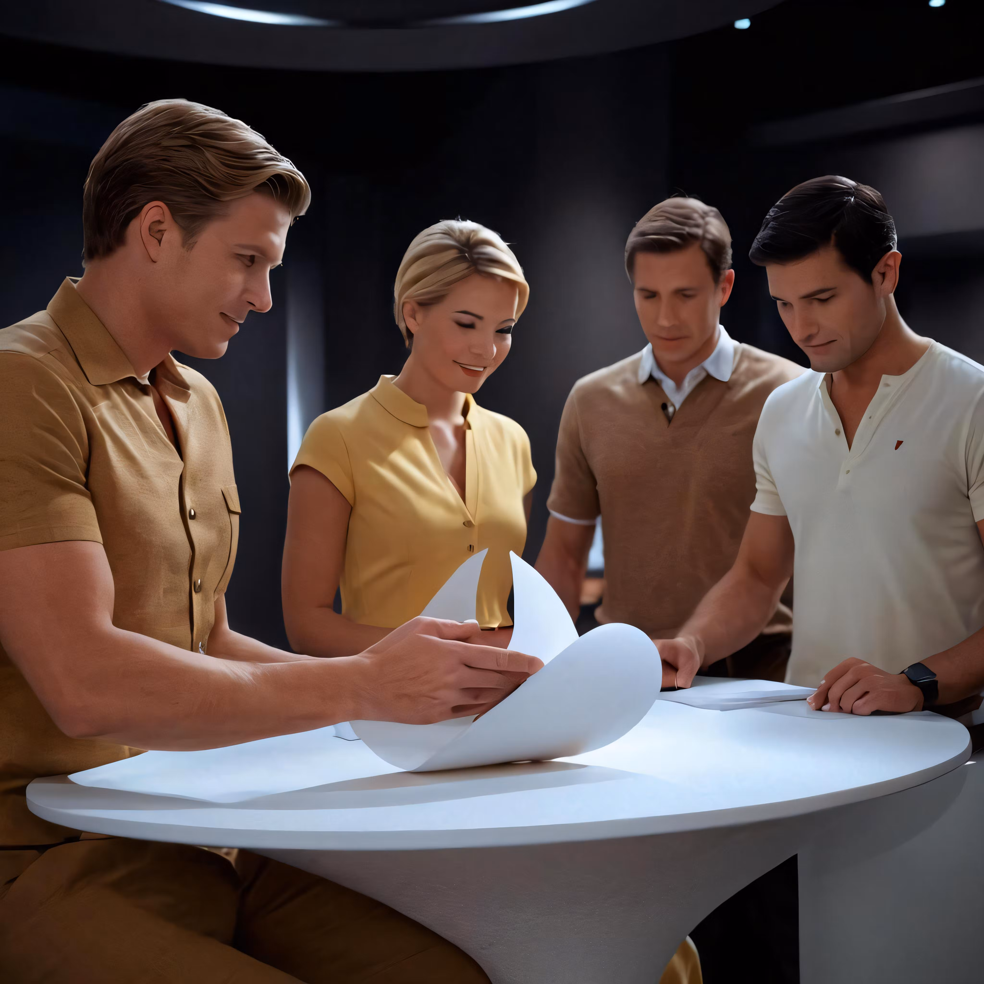High resolution picture, free to use, people looking at papers at a table