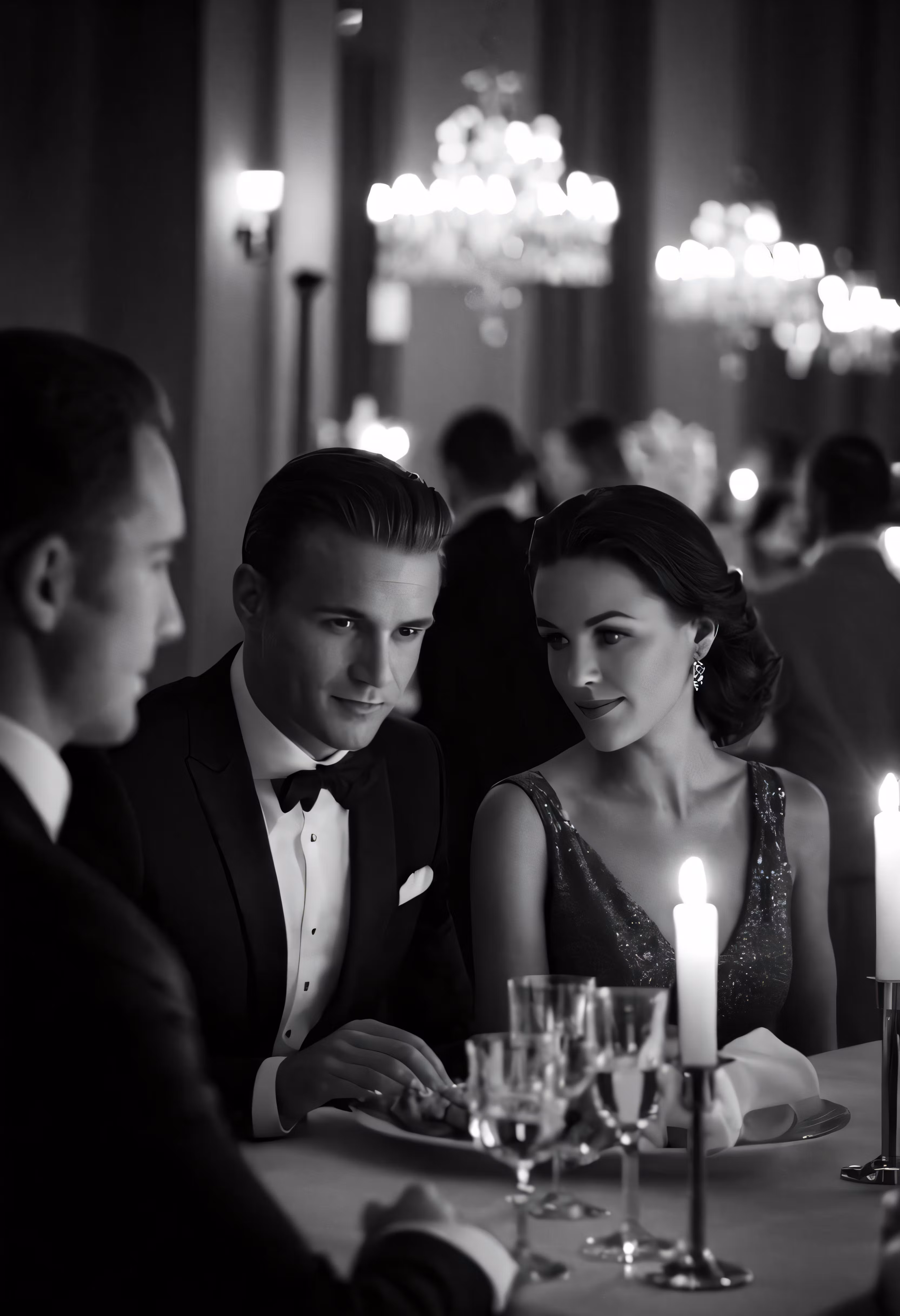 High resolution picture, free to use, people sitting at a dinner table in the middle of an banquet