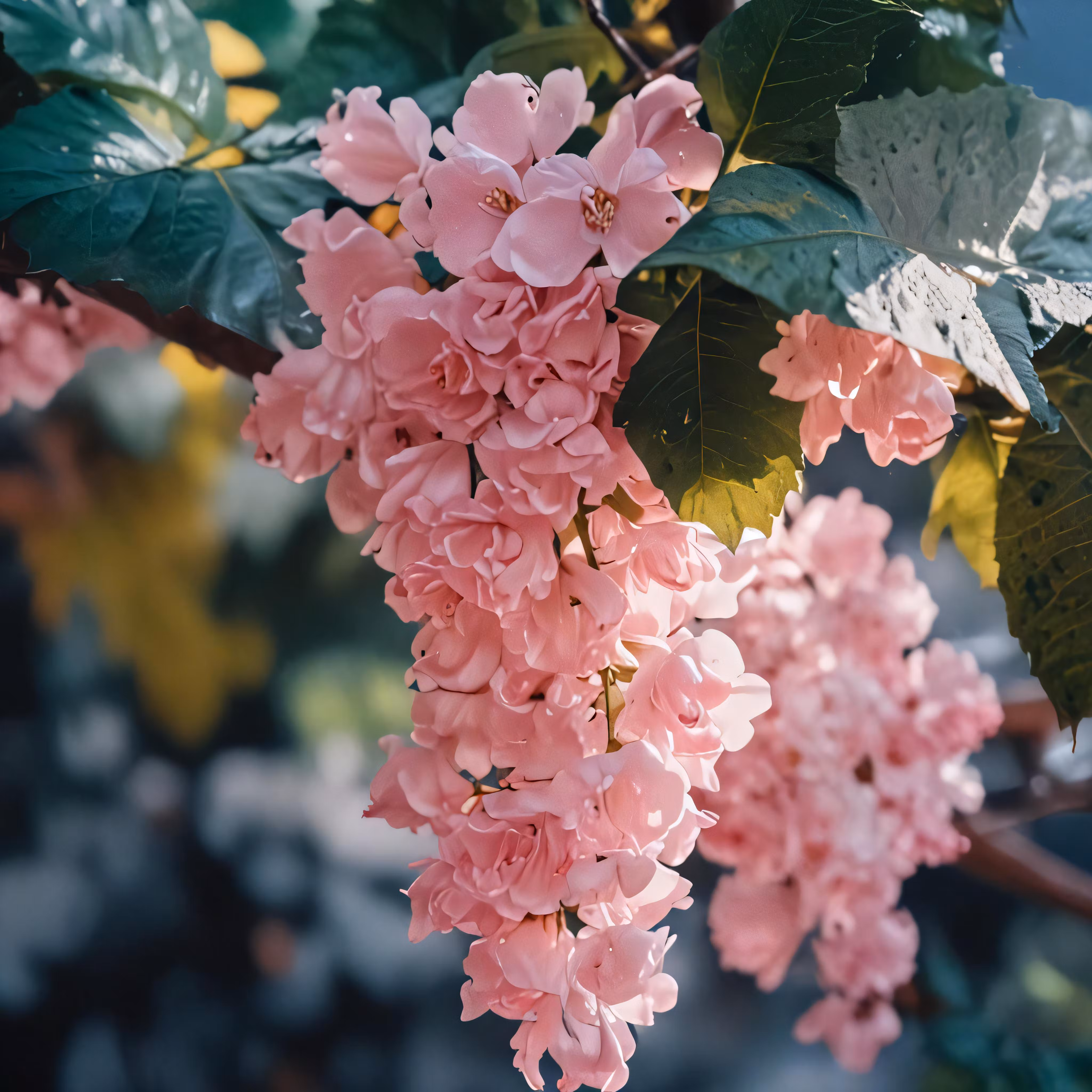 High resolution picture, free to use, pink flowers growing from branches of tree