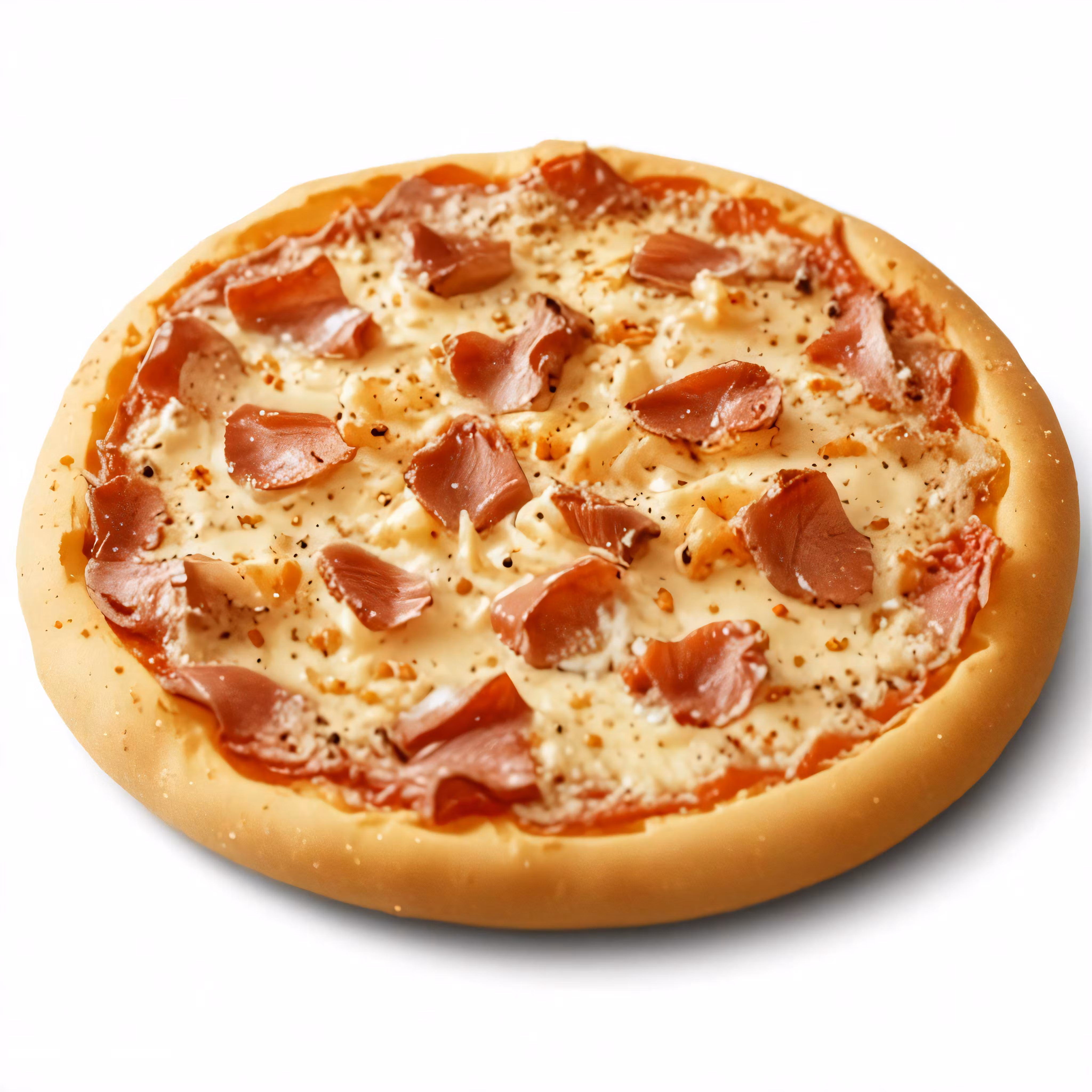High resolution picture, free to use, pizza with lots of cheese and toppings on white background