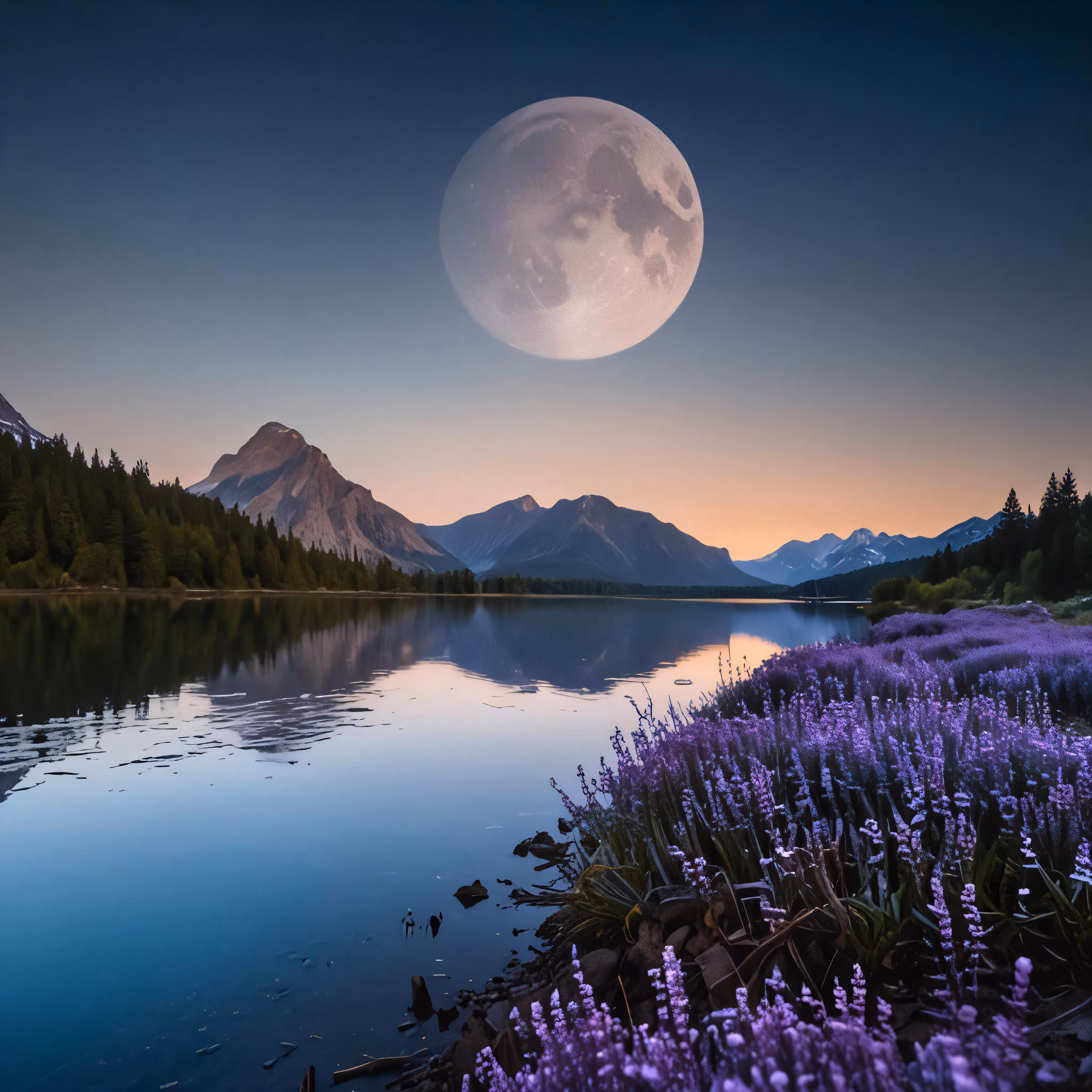 High resolution picture, free to use, purple flowers in a field next to a body of water