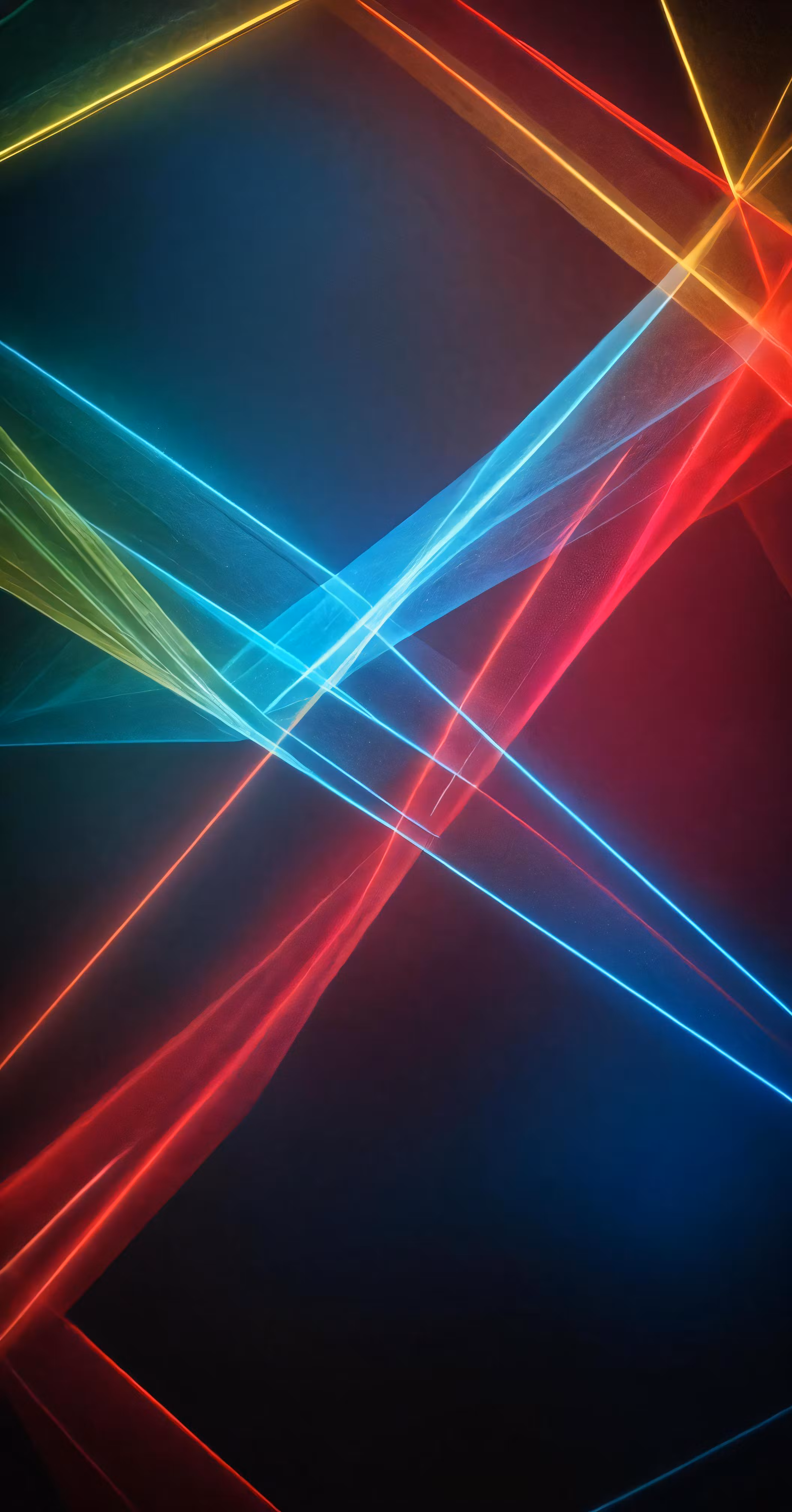 High resolution picture, free to use, red, orange, and blue lines going through a dark room