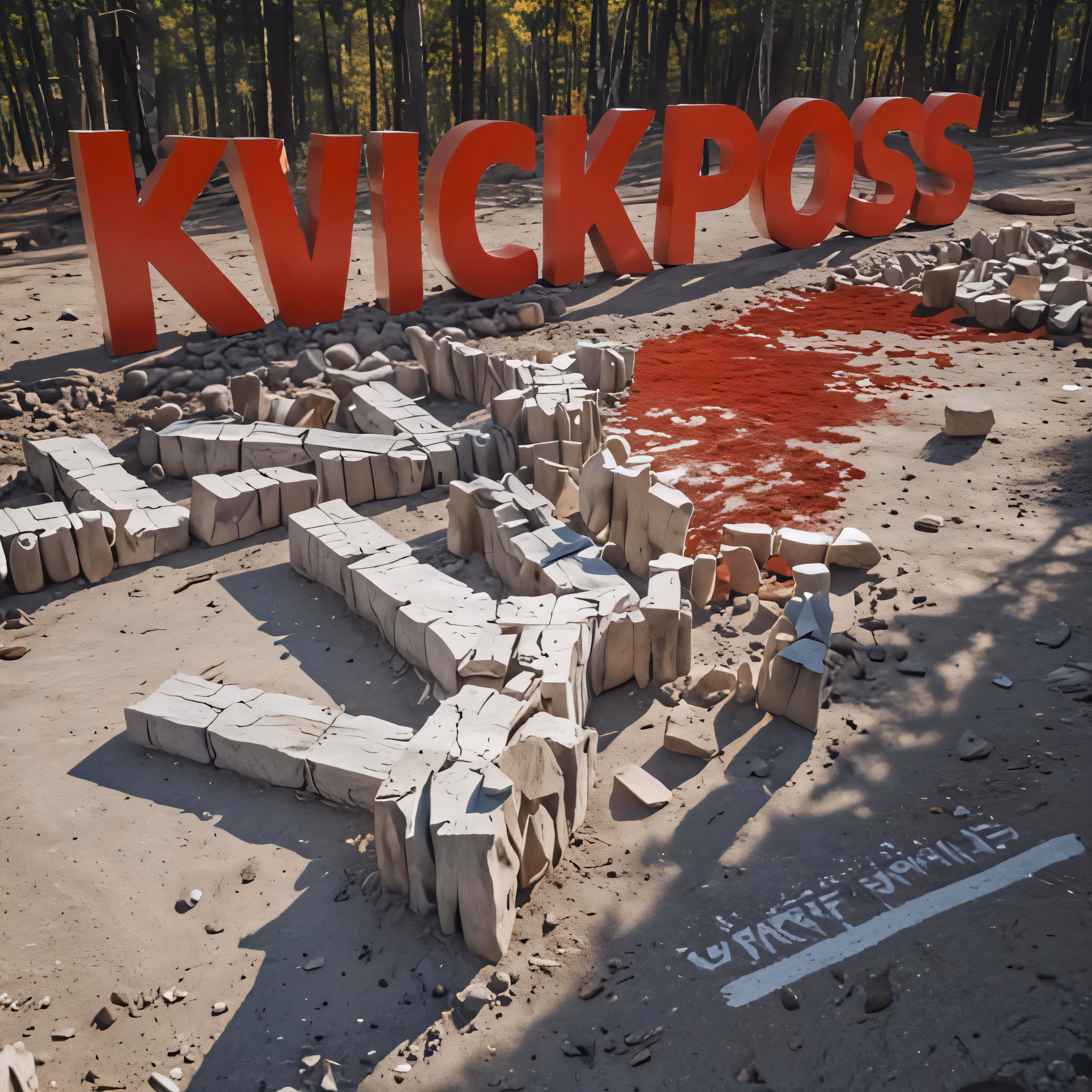 High resolution picture, free to use, red paint covering several blocks with words in the background