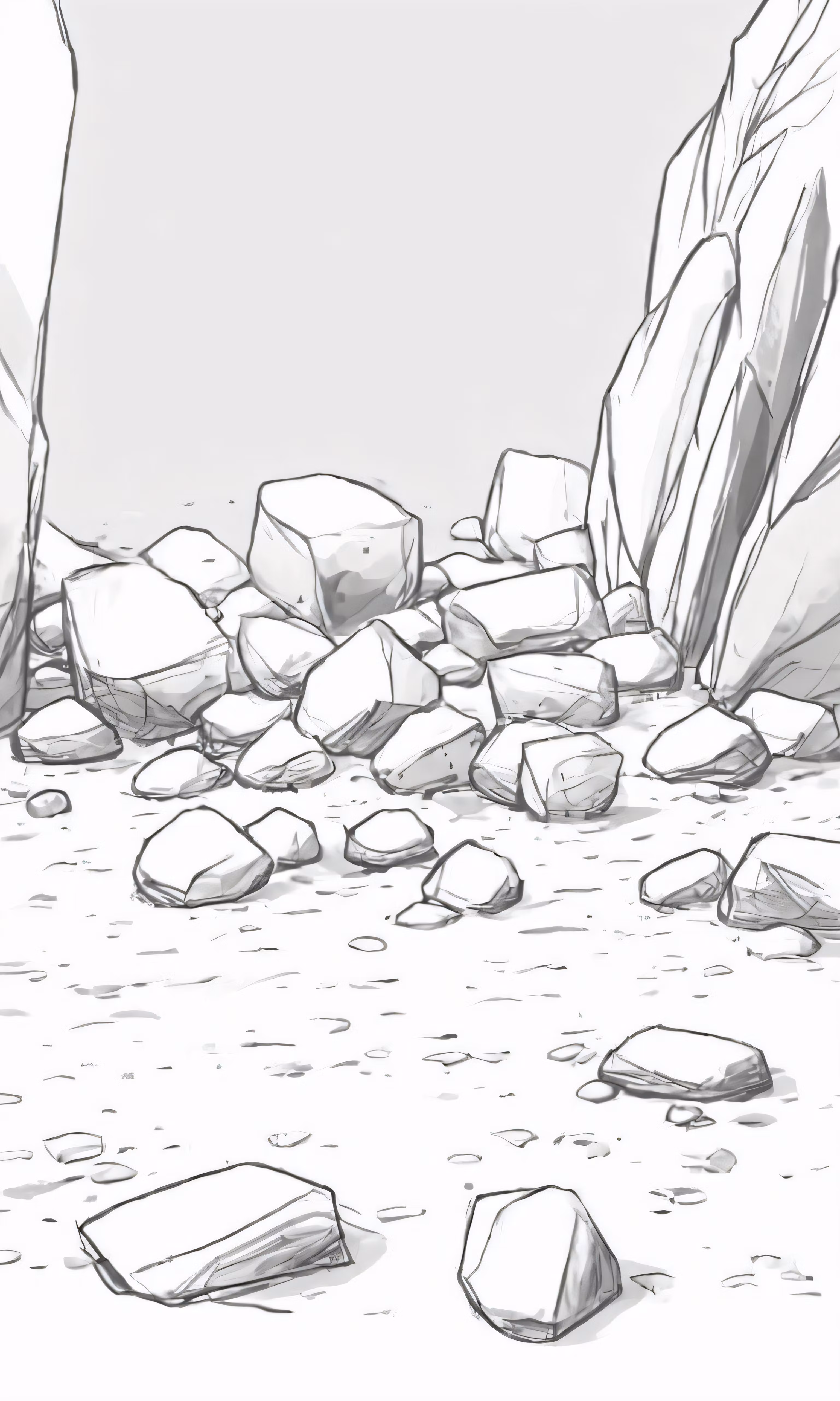 High resolution picture, free to use, rocks in a landscape with a gray sky