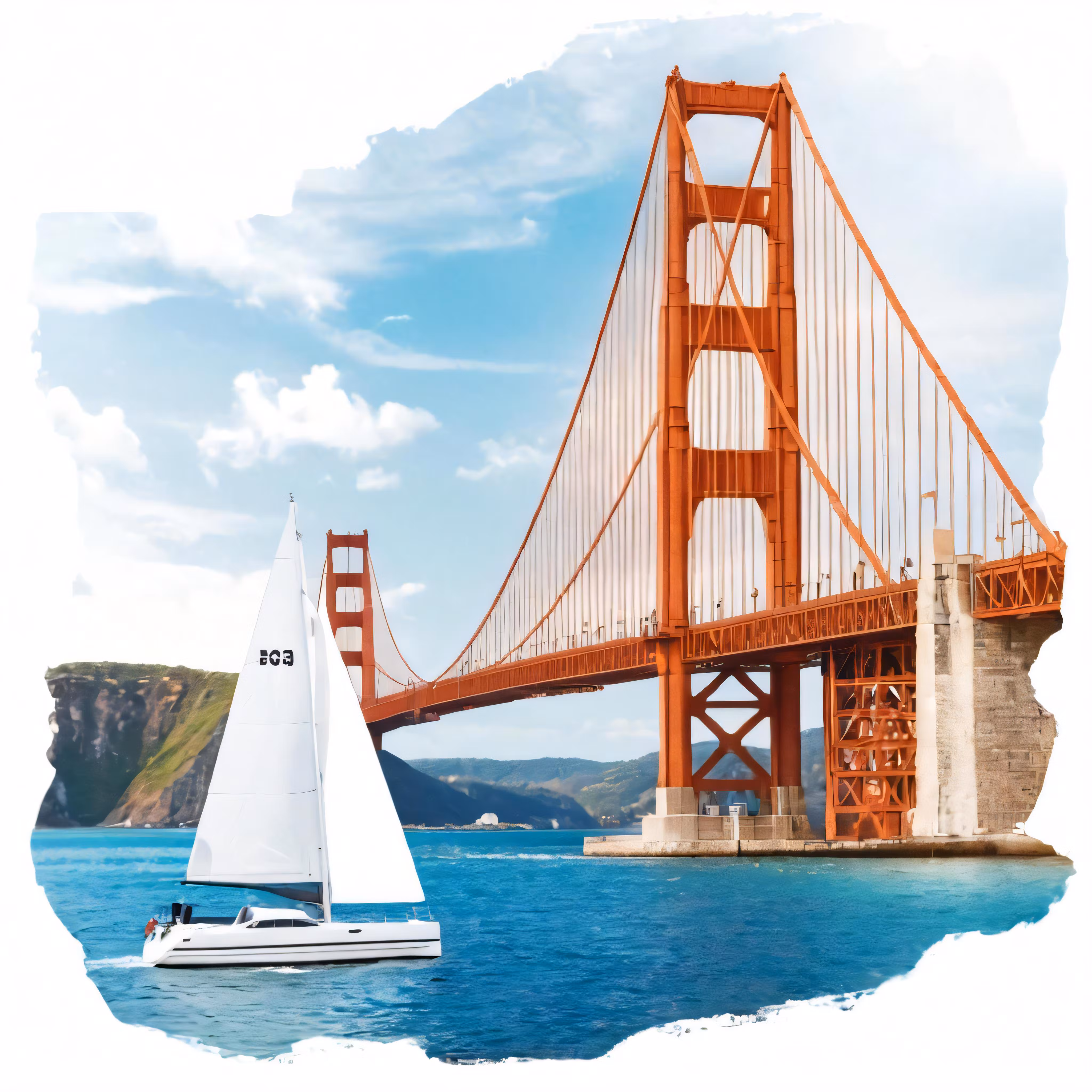 High resolution picture, free to use, sailboats in the blue ocean near a bridge