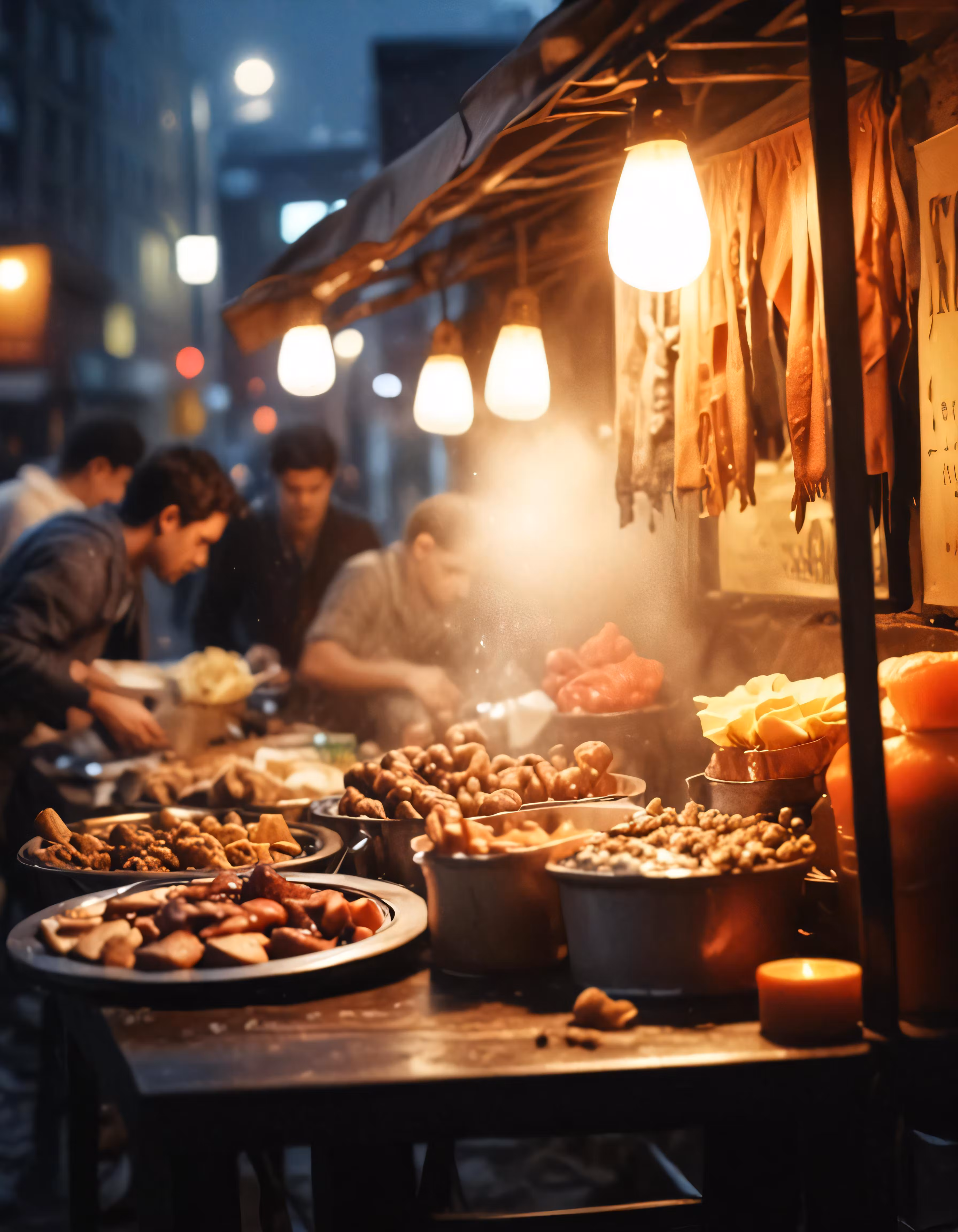 High resolution picture, free to use, several people standing around an outside stand in the street