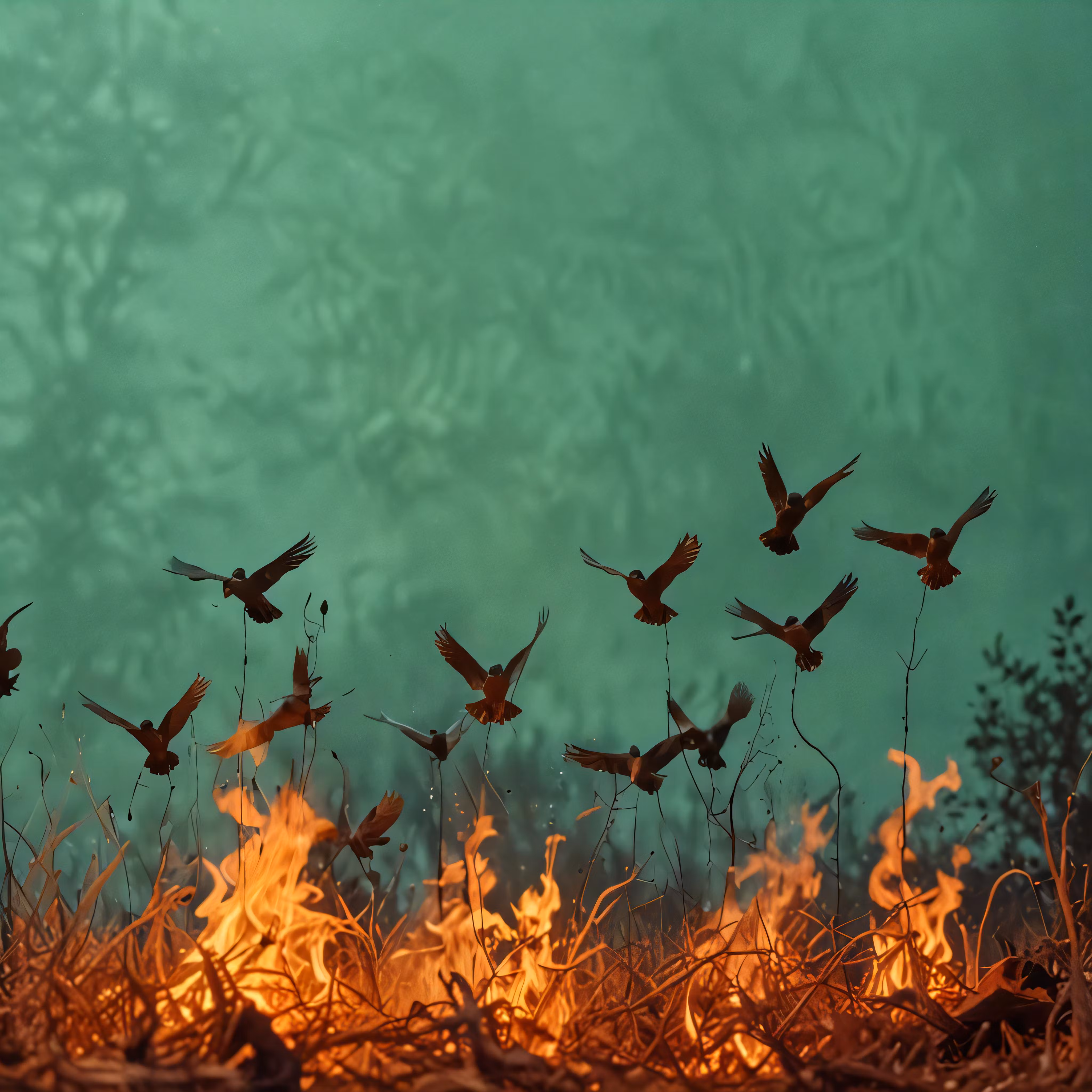 High resolution picture, free to use, some birds flying around a campfire in the forest