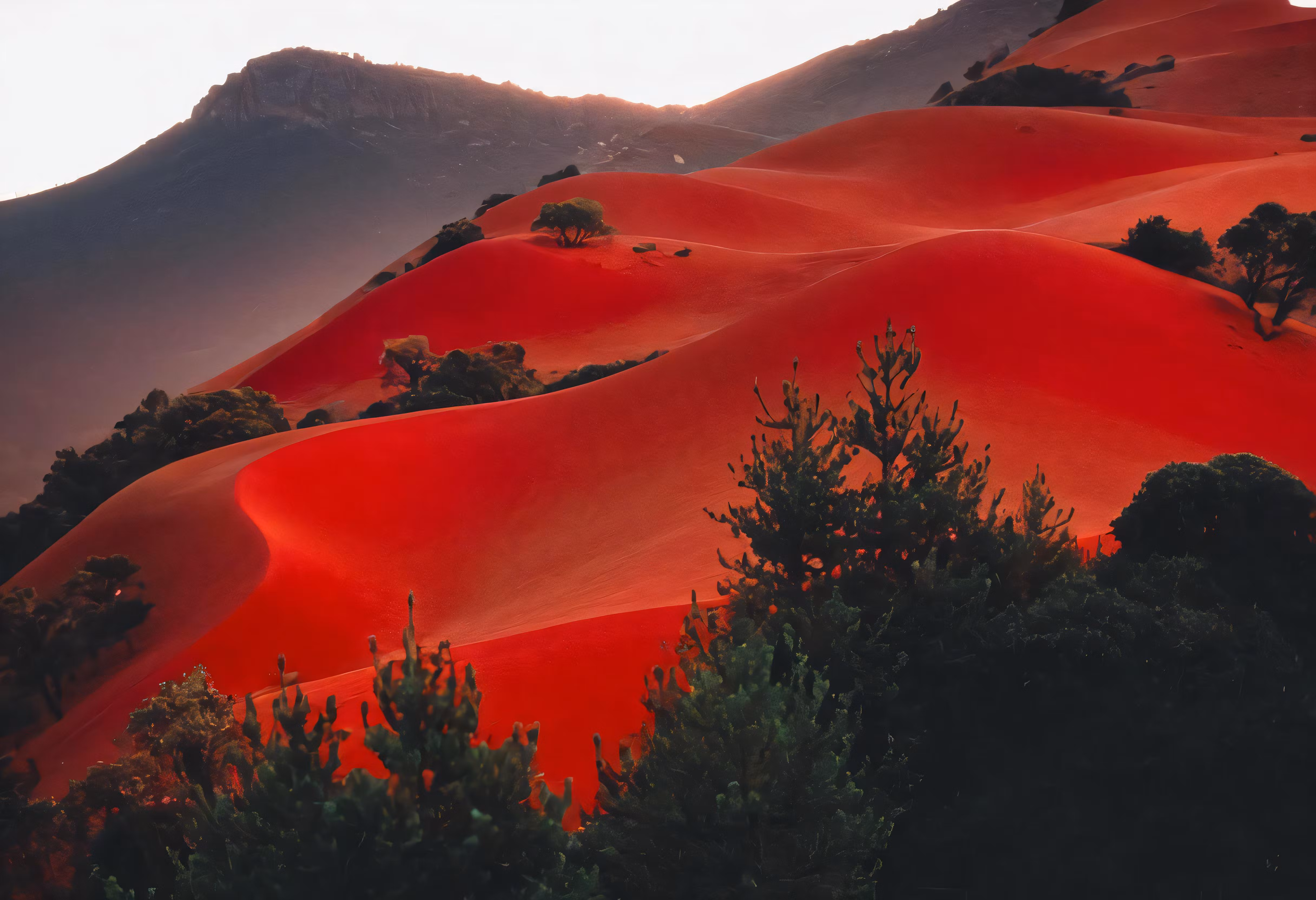 High resolution picture, free to use, some grass trees and mountains and red sand