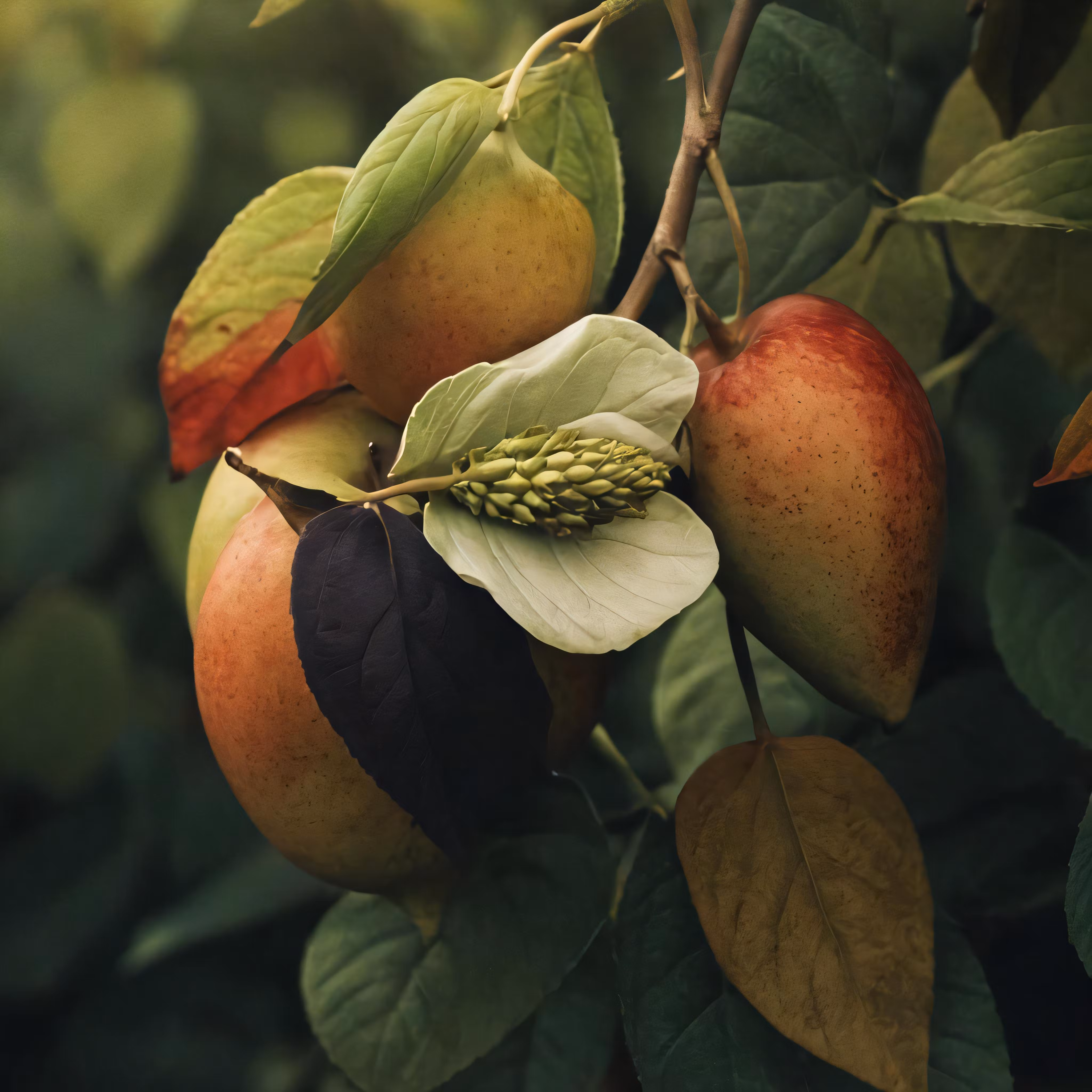 High resolution picture, free to use, some leaves and fruits on a tree limb