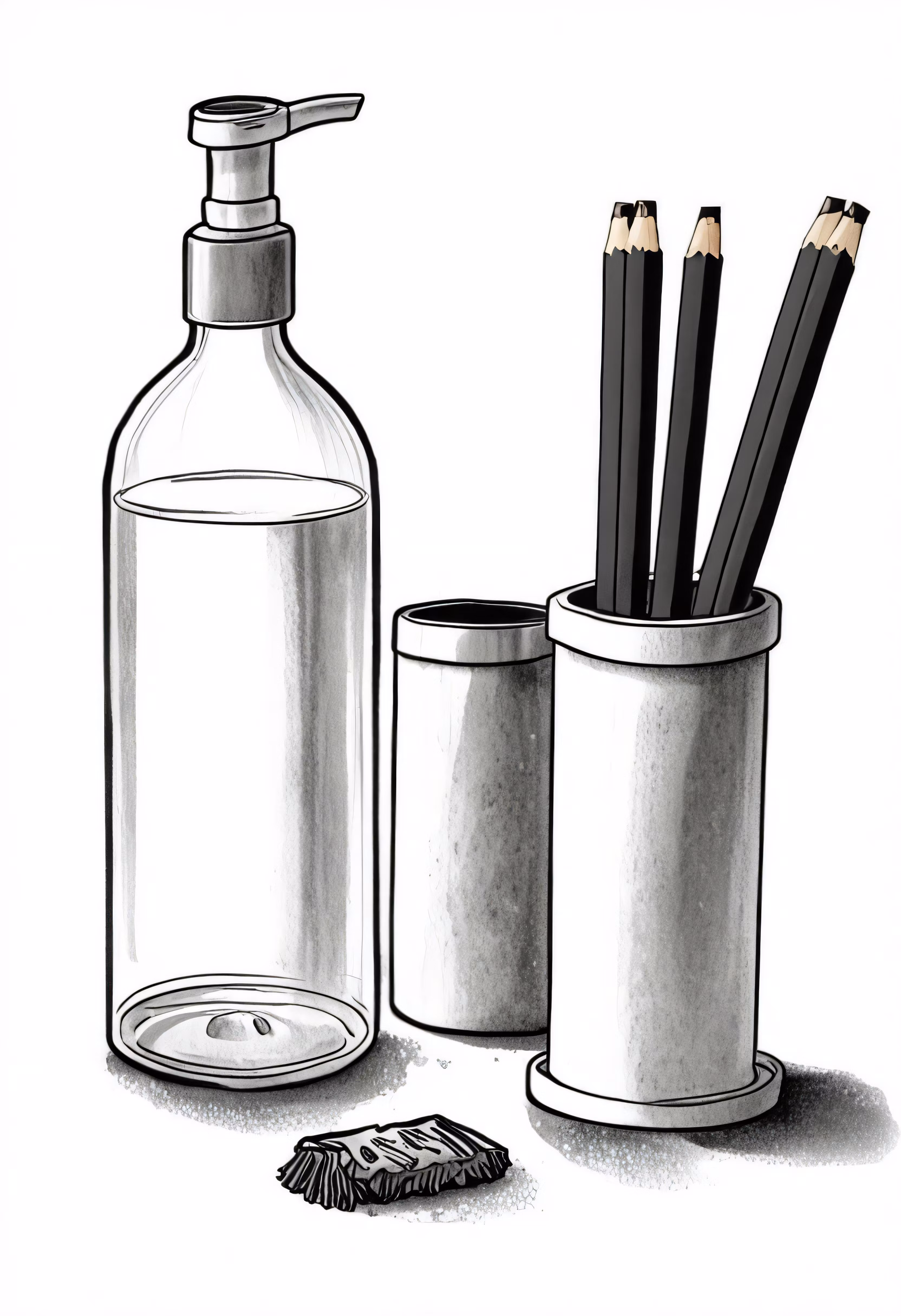 High resolution picture, free to use, some pencils and a lotion on a white background