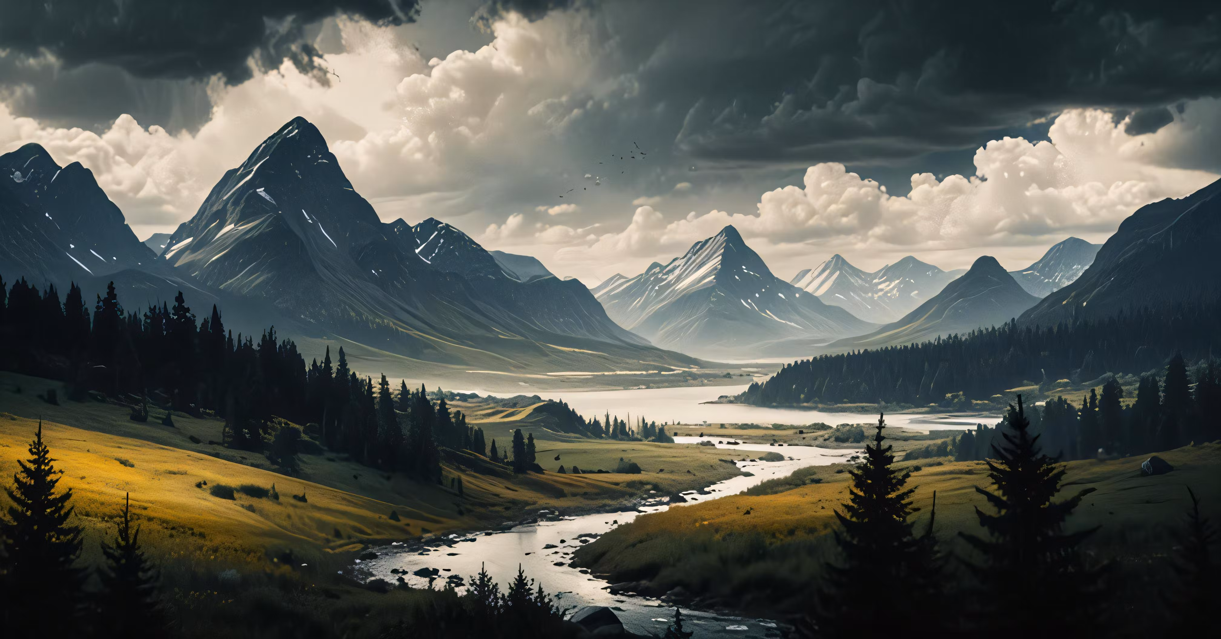 High resolution picture, free to use, some very tall mountain side with a river