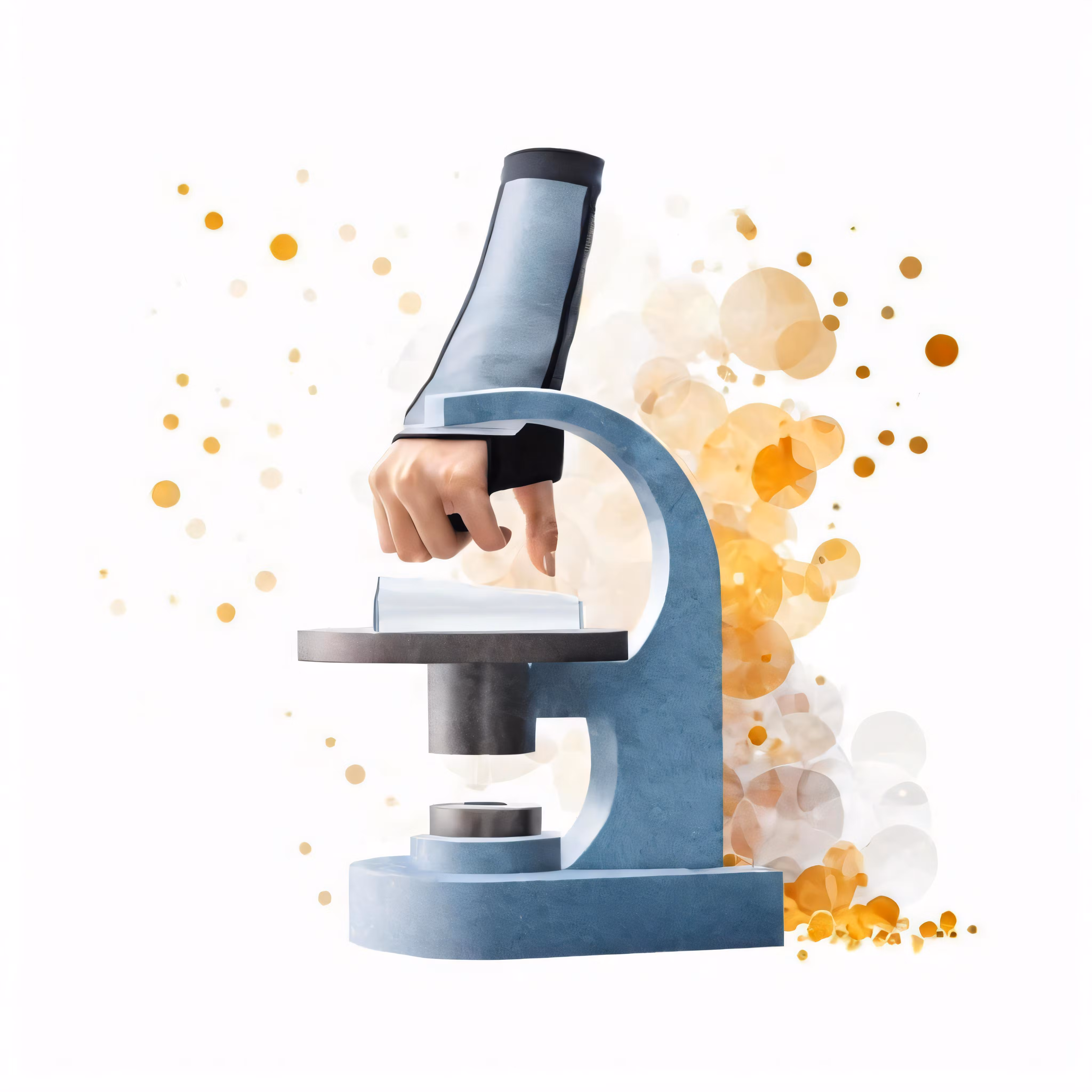 High resolution picture, free to use, someone at a microscope with the hand holding it