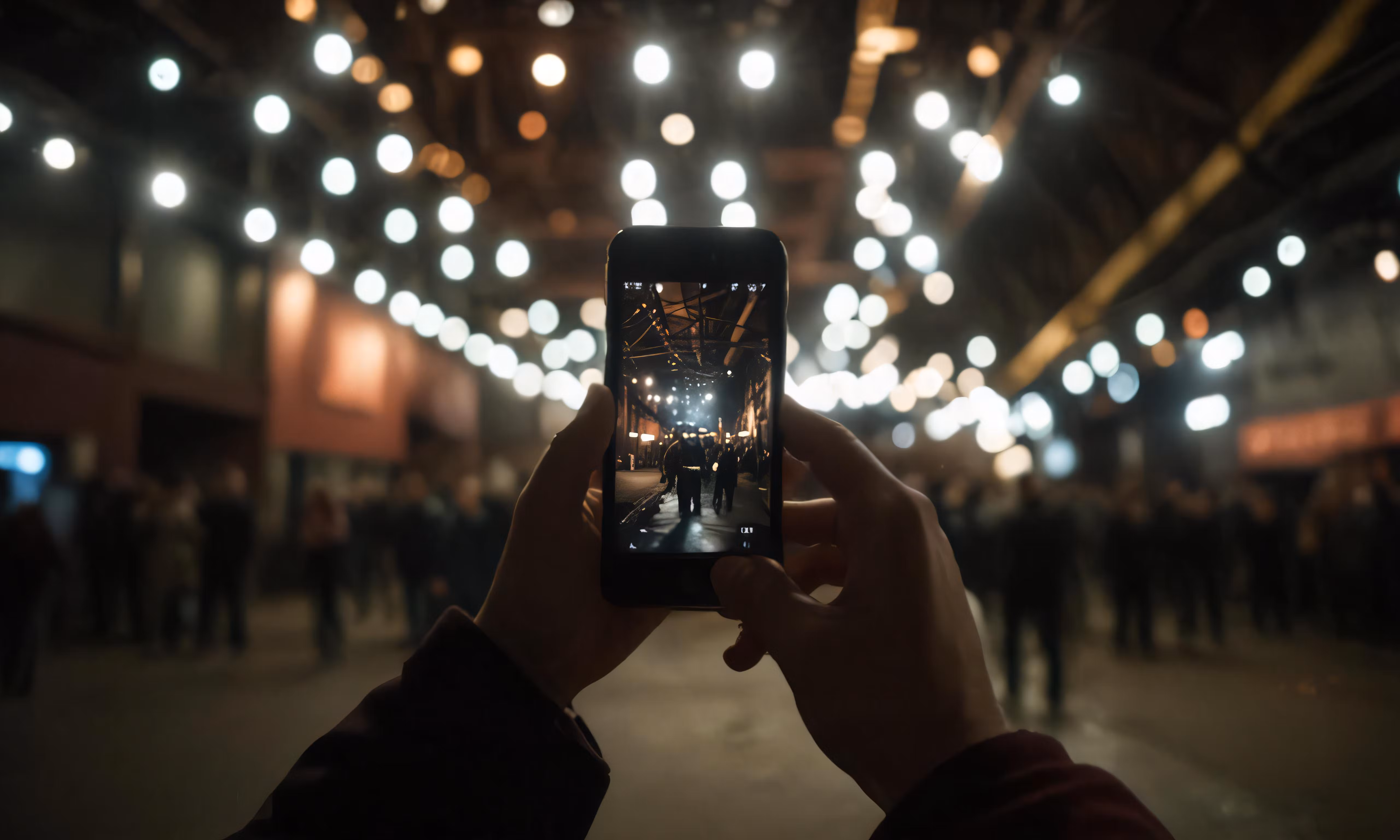 High resolution picture, free to use, someone holding up a smart phone in the dark